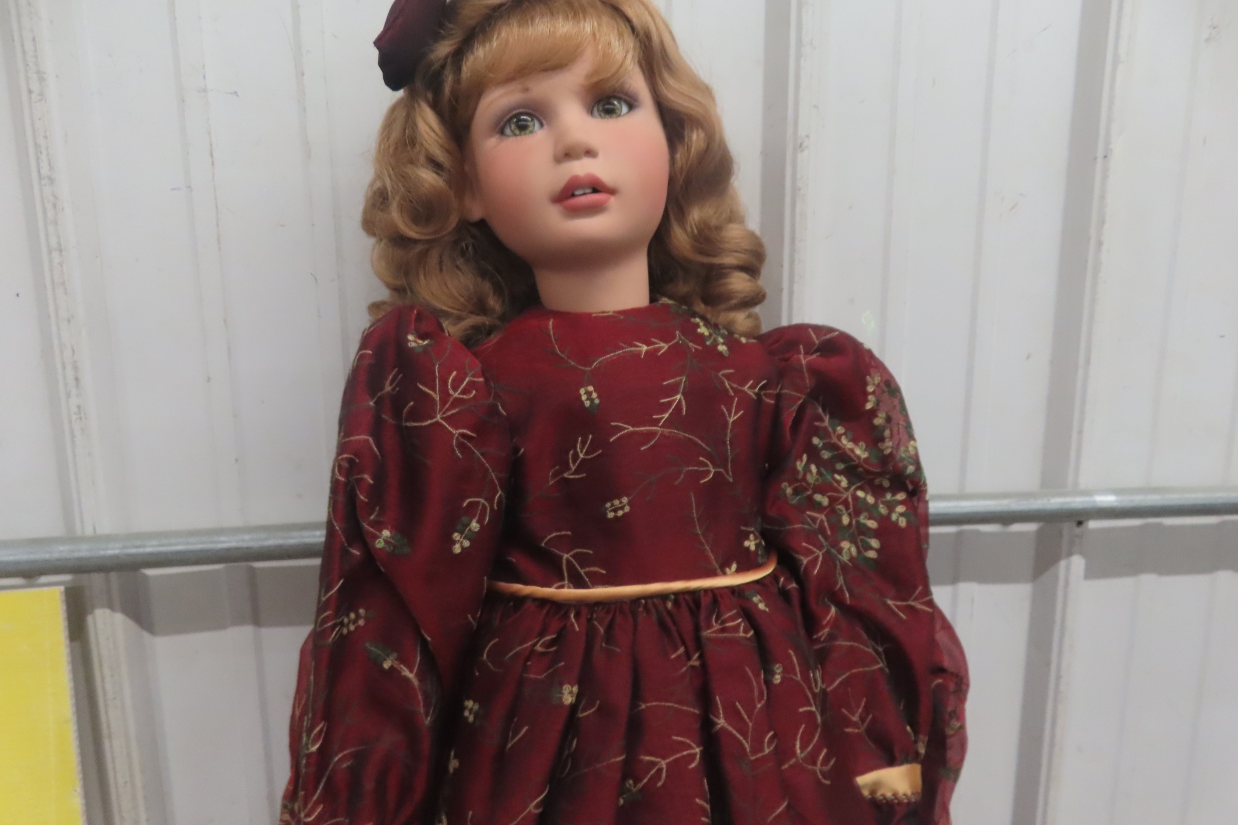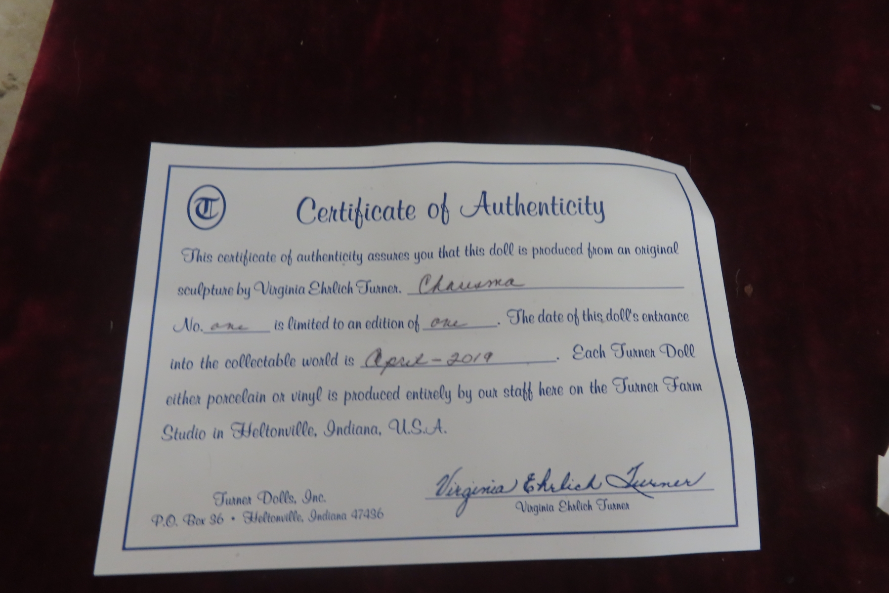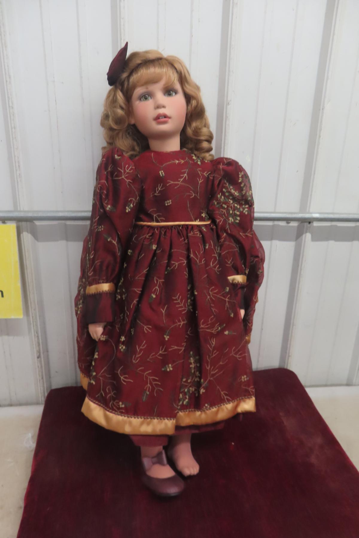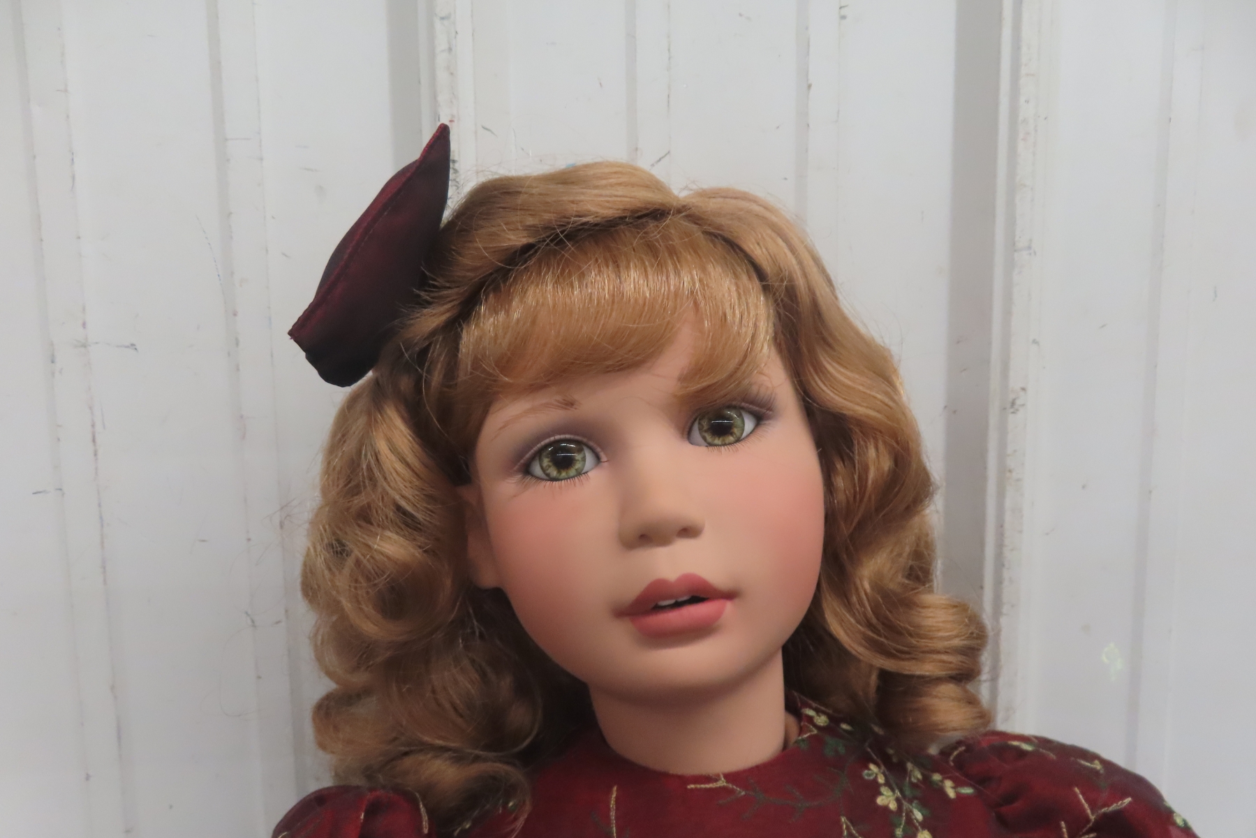 Virginia Turner “Charisma” Limited Edition Artist Doll — Porcelain/Vinyl Doll With Embroidered Burgundy Dress, Matching Hair Bow, Shoes, Original Box, and Certificate of Authenticity