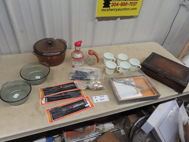 Visionwear, Pyrex Cups, Cheese Cutter & Flatware & Chest
