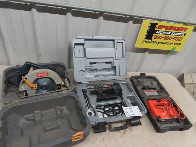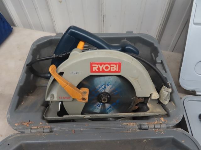 (W) 3 Power Tools w Cases - Ryobi Circ Saw, Roto Zip Spiral Saw, & B & D Jig Saw