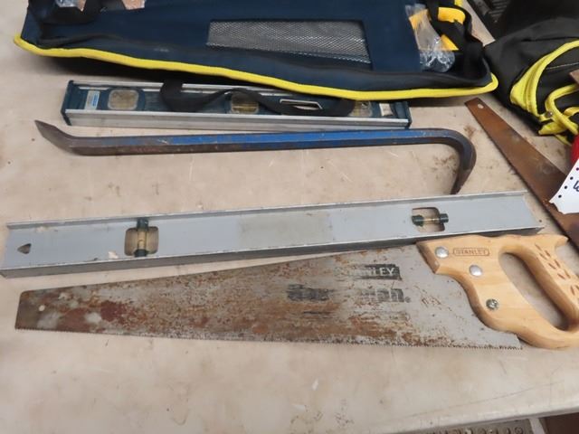 (W) Carpentry Tools, Saws, Tape Measure, Wrecking Bars, Chalk Lines, Levels, Squares , Quick Clamps, Plus MOre!