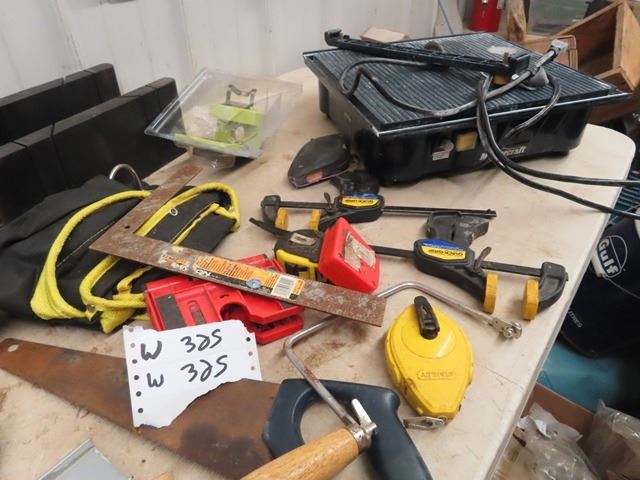 (W) Carpentry Tools, Saws, Tape Measure, Wrecking Bars, Chalk Lines, Levels, Squares , Quick Clamps,