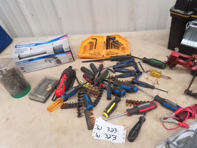 (W) Fat Max Tool Box, Genesis Power Hammer Drill, Chain Saw Sharpener, Screwdrivers, Allan Wrenches Plus More