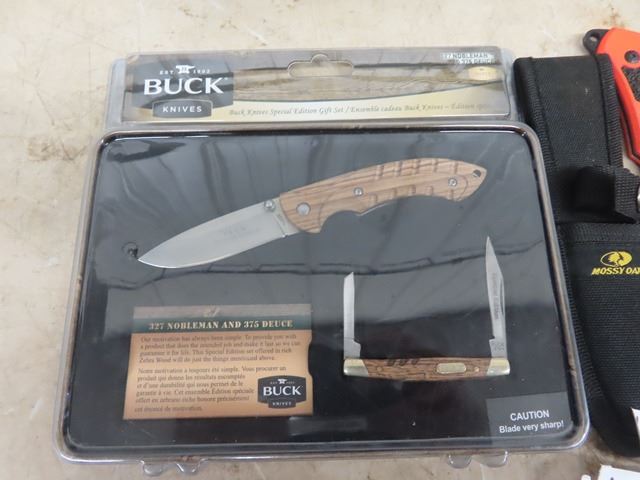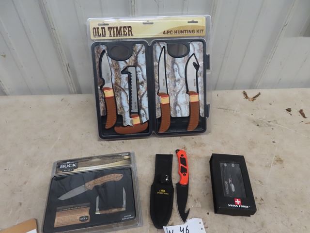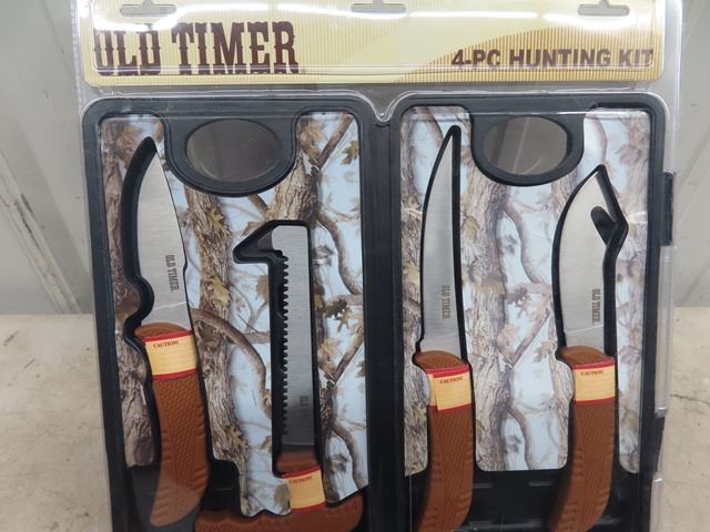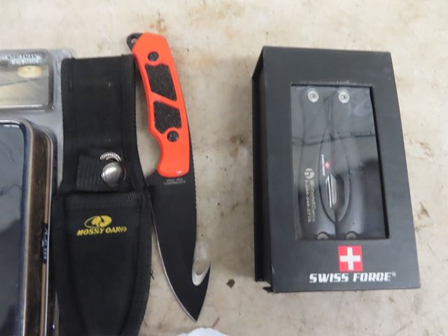 (W) New Old Timer 4 Pc Hunting knife Kit, New Buck Knife,New Swiss Force Utility Knife/Tool, & New Mossey Oak Knife