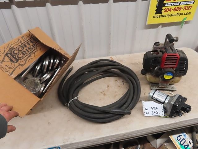 (W) Power Fist 1" Gas Water Pump, 12 Volt Water Pump Hose, & Solar Lights