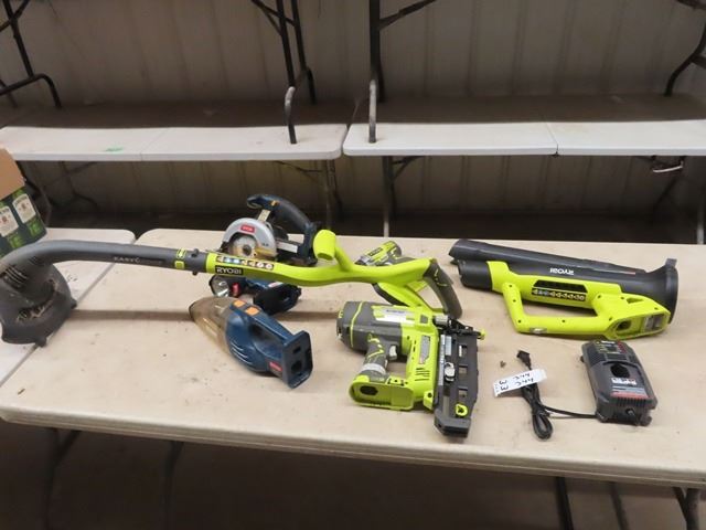 (W) Ryobi Cordless Tools, Trimmer, Saw, Nailer Blower, Charger, no Battery