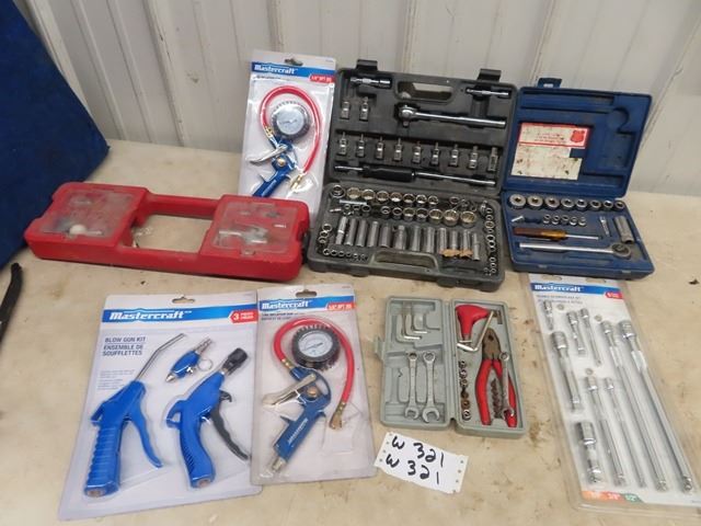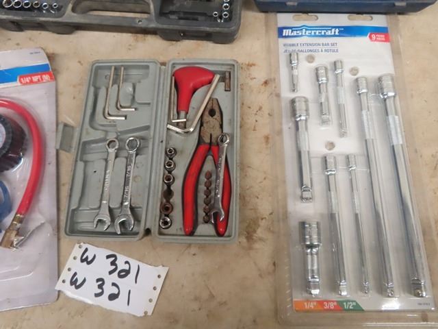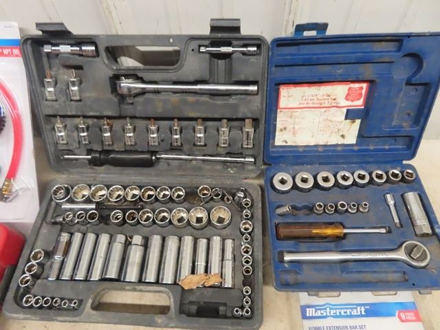 (W) Socket sets 1/2" 3/8" New Mastercraft Extensions, New Mastercraft Air Gauges & Blades Plus