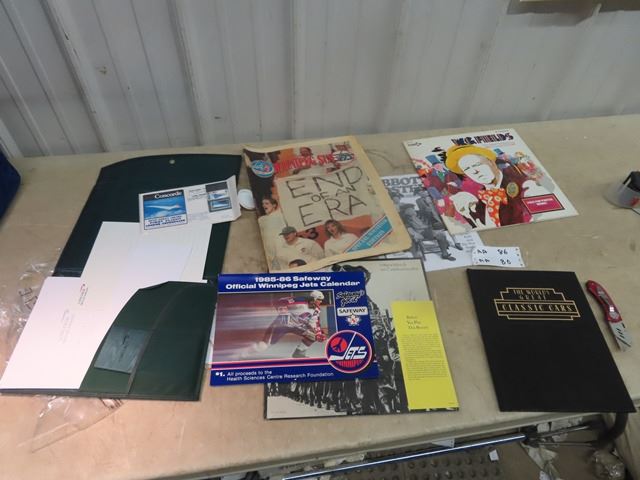 W W II Hitler March Album, WC Fields Album, Chaplin DVD, Book World's Classic Cars -Franklin Mint, Wpg Sun May 7, 1996 End of Wpg Jets, 1985 Jets Calendar, Concord British Airways Pamphlets