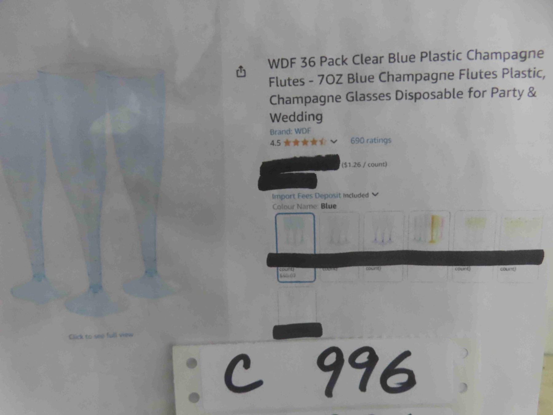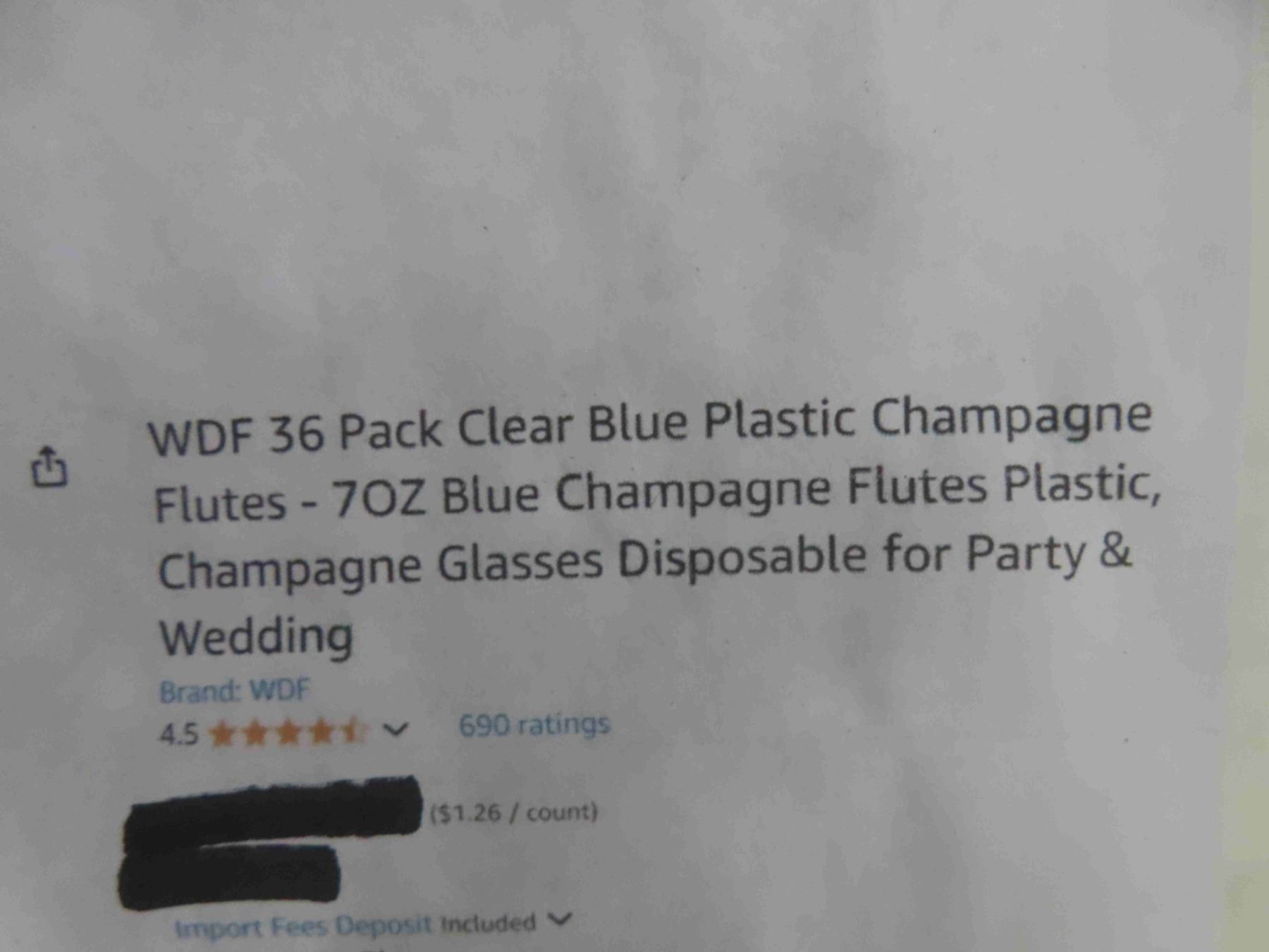 WDF 36 Pack Clear Blue Plastic Champagne Flutes - 7OZ Blue Champagne Flutes Plastic, Champagne Glasses Disposable for Party & Wedding - New or Store Return