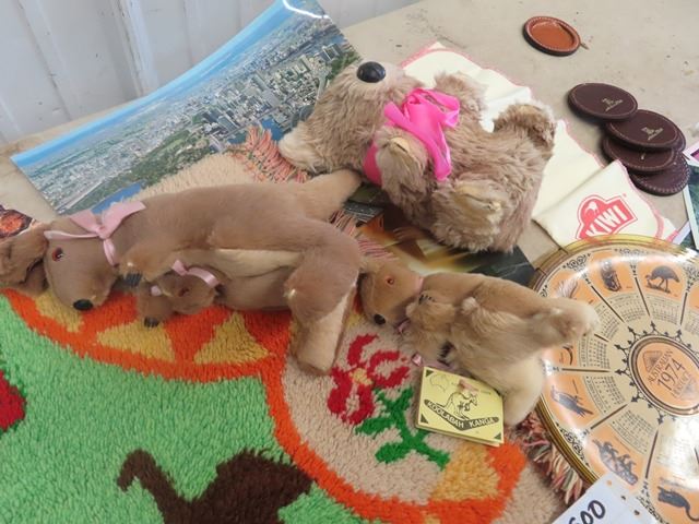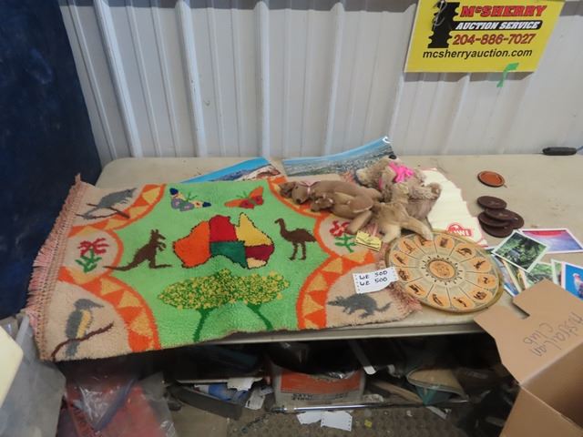 (WE) Austrailian Sovenir - Kangaroo Hide Stuffy, Rug Art, Calenar Plate, Plus More