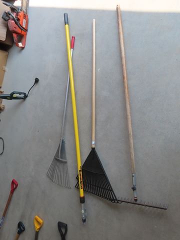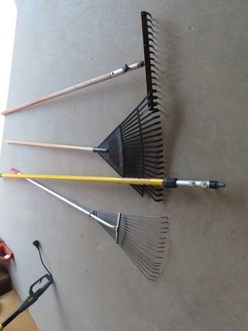 (WE) Garden Hose, Lawn Fertilizer, 3 Rakes & Ext Pole