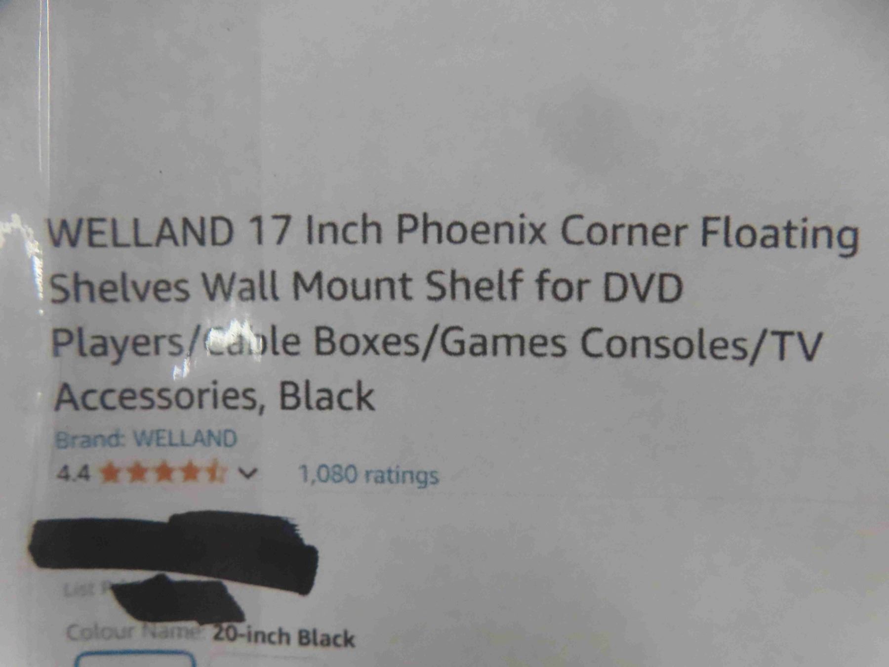 WELLAND 17 Inch Phoenix Corner Floating Shelves Wall Mount Shelf for DVD Players/Cable Boxes/Games Consoles/TV Accessories, Black - New or Store Return