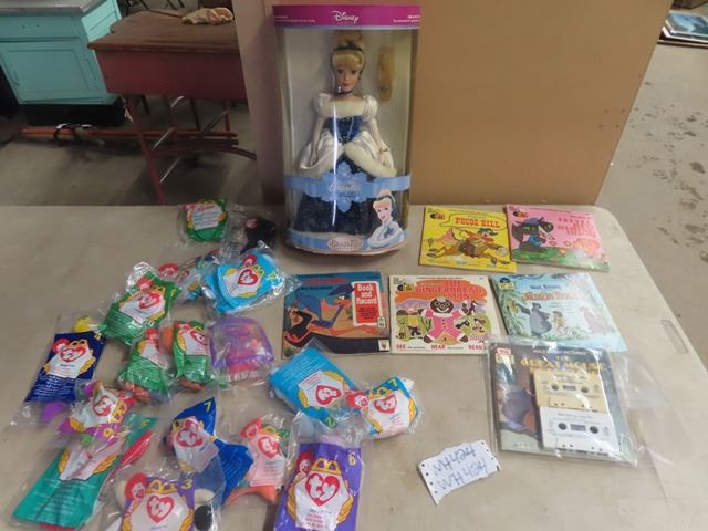 (WH) Disney Cinderella Collector Doll, 15 McDonalds Toys in Pkg, 6 Disney Read A Long w Tapes