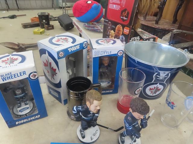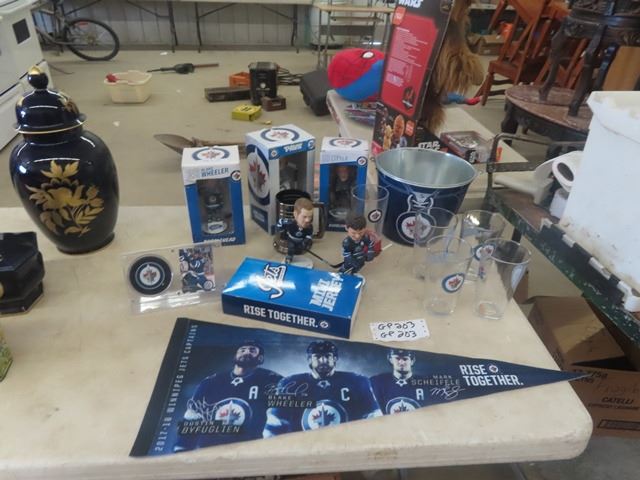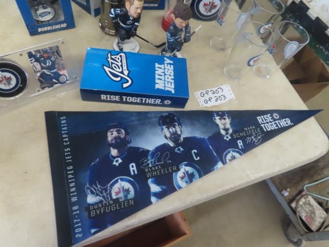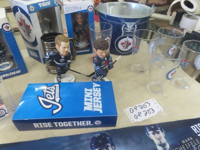 WPG Jets Memorabilia ; Bobblehead, Byfuglien Card + Puck, Slogan Ice Bucket plus more