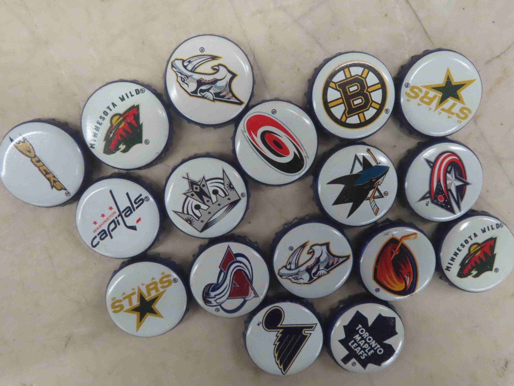 WPG Jets + Moose Promotional Items, Mike E Moose Autographed Card, Beer Caps with NHL Teams