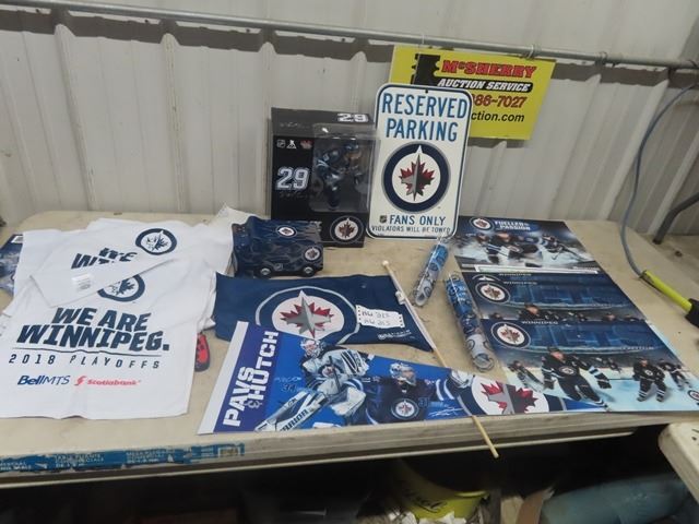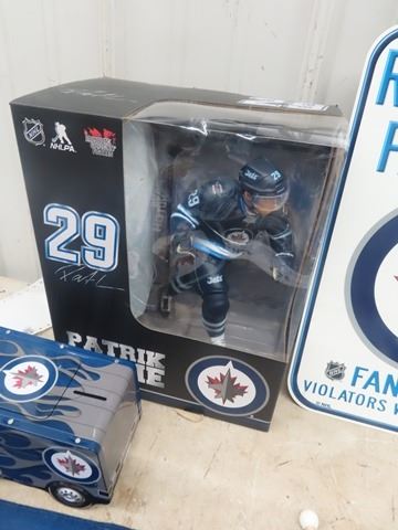 WPG Jets memorbilia Laine Figure in Box, Placemats, Signs, Flags, Towel + Zambonie display