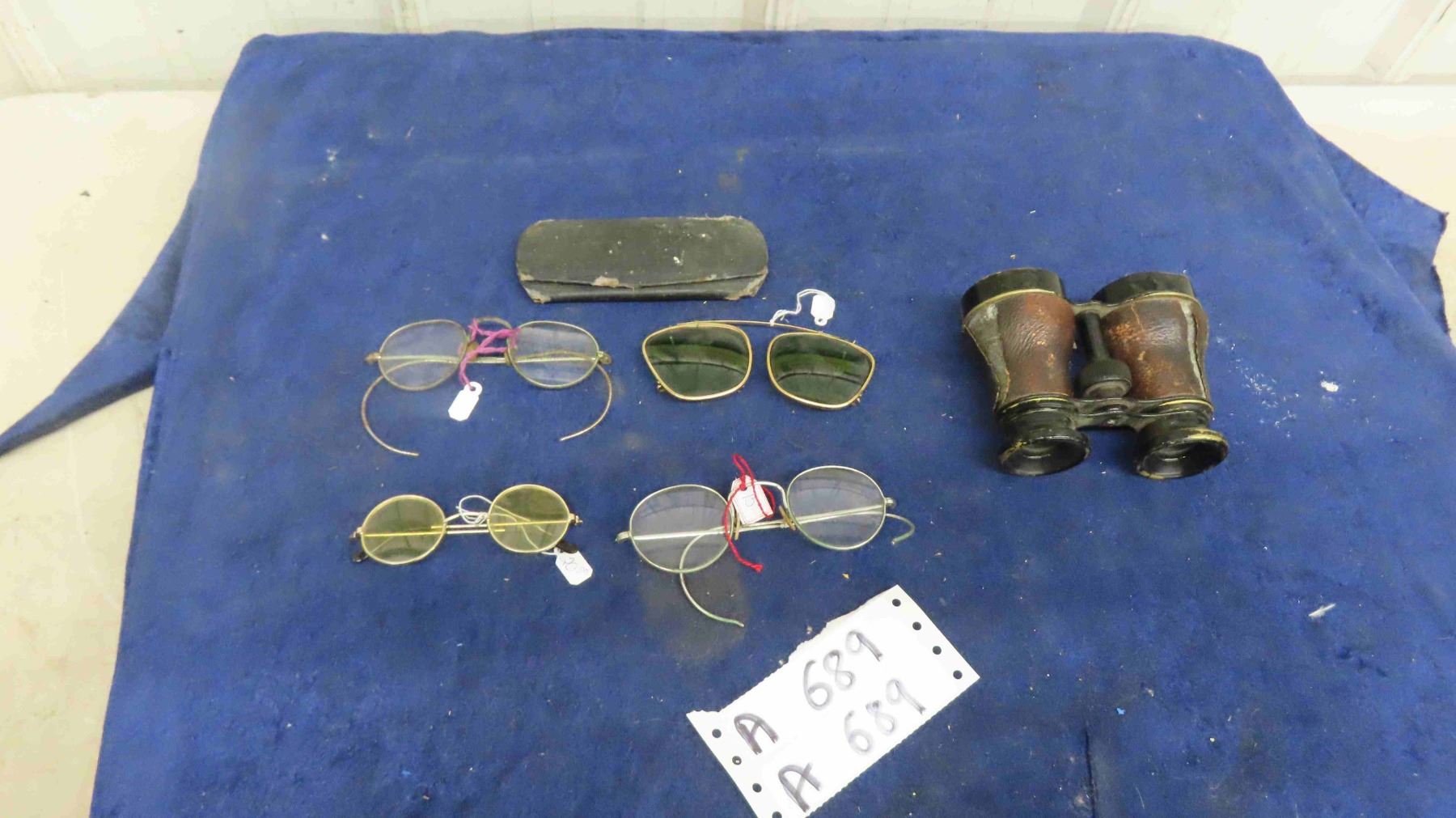 WW2 Binoculars , 4 Vintage Specs, 1 Case