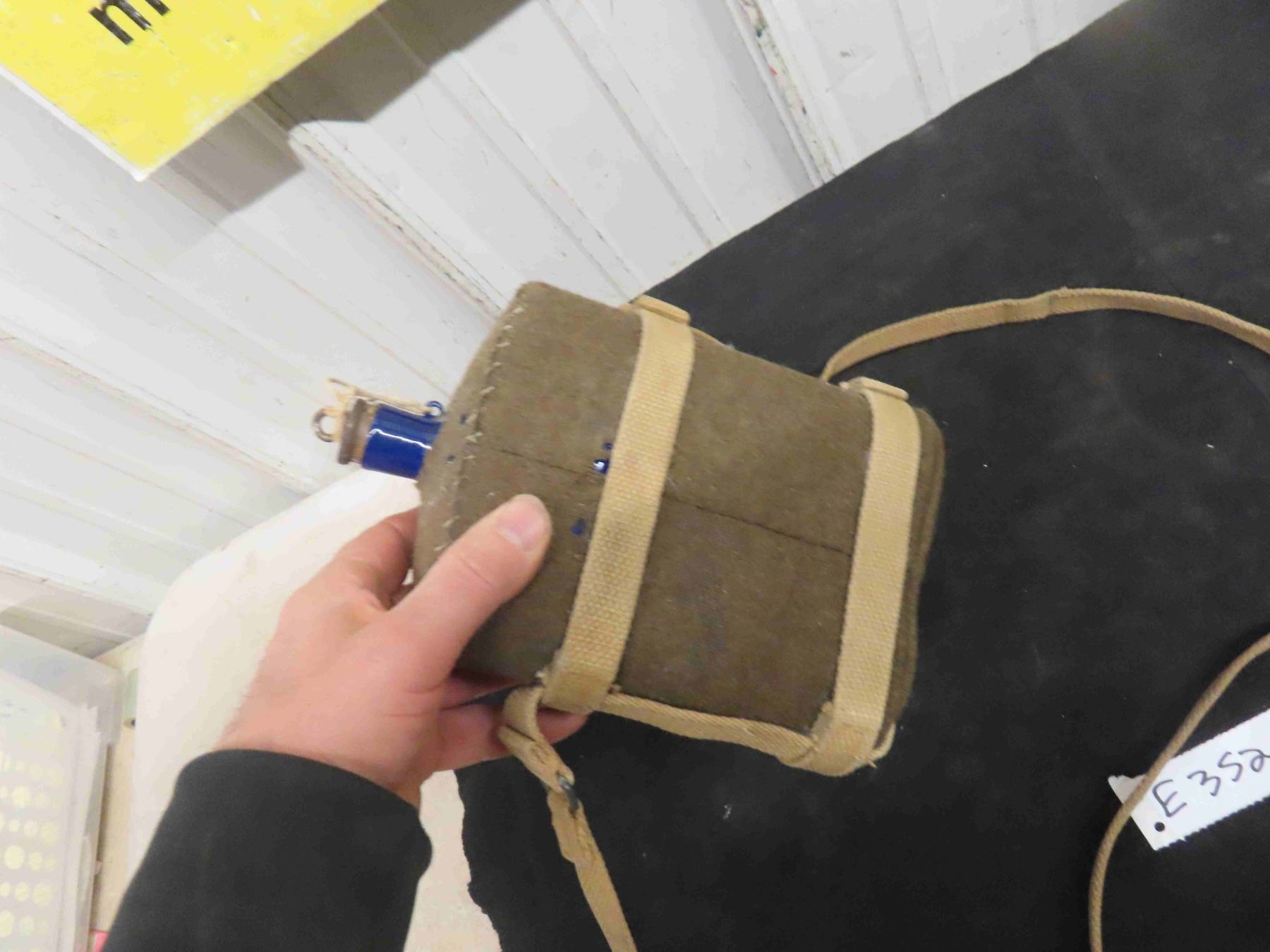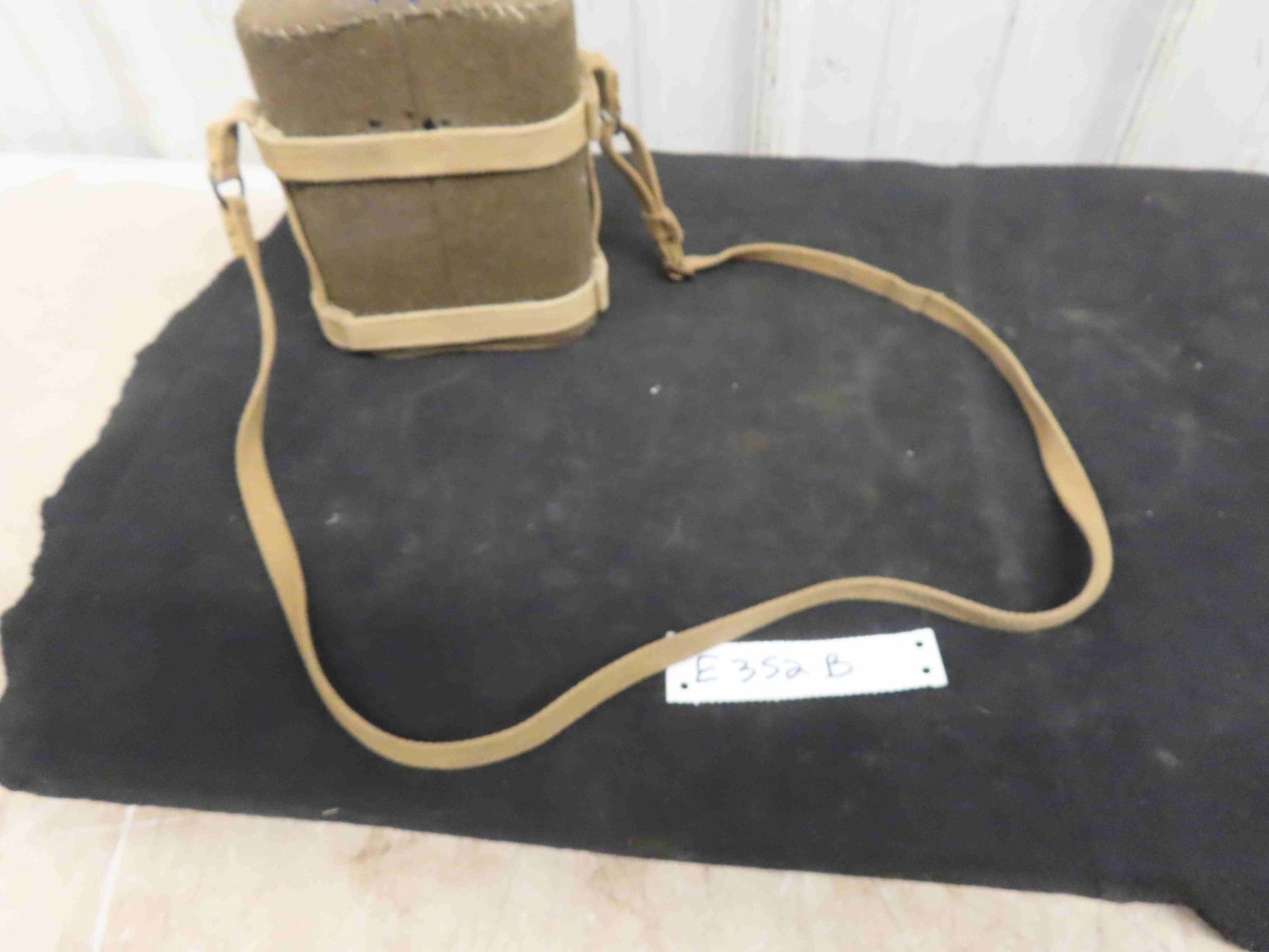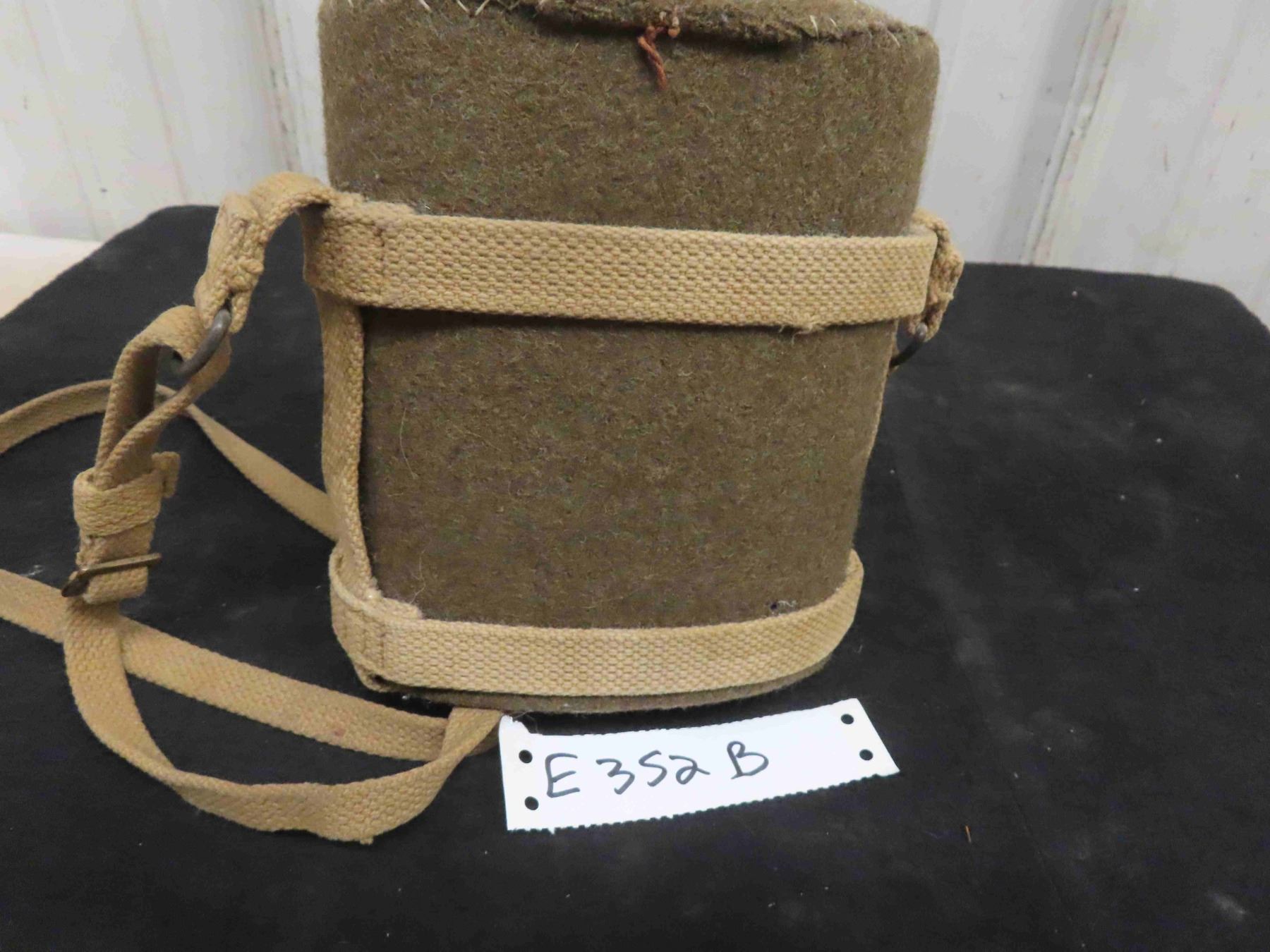 WWII Military Canteen. Green Felt Covering with Blue Porcelain Metal. Cork Stopper. Excellent Condition.