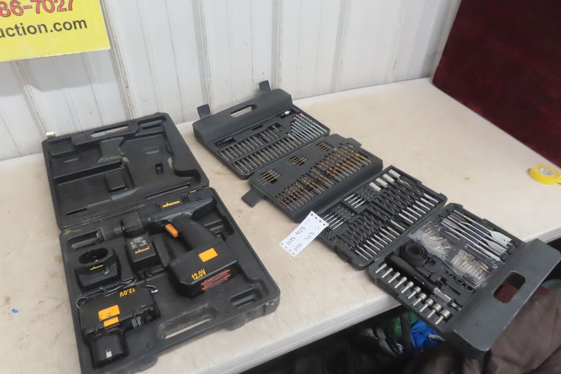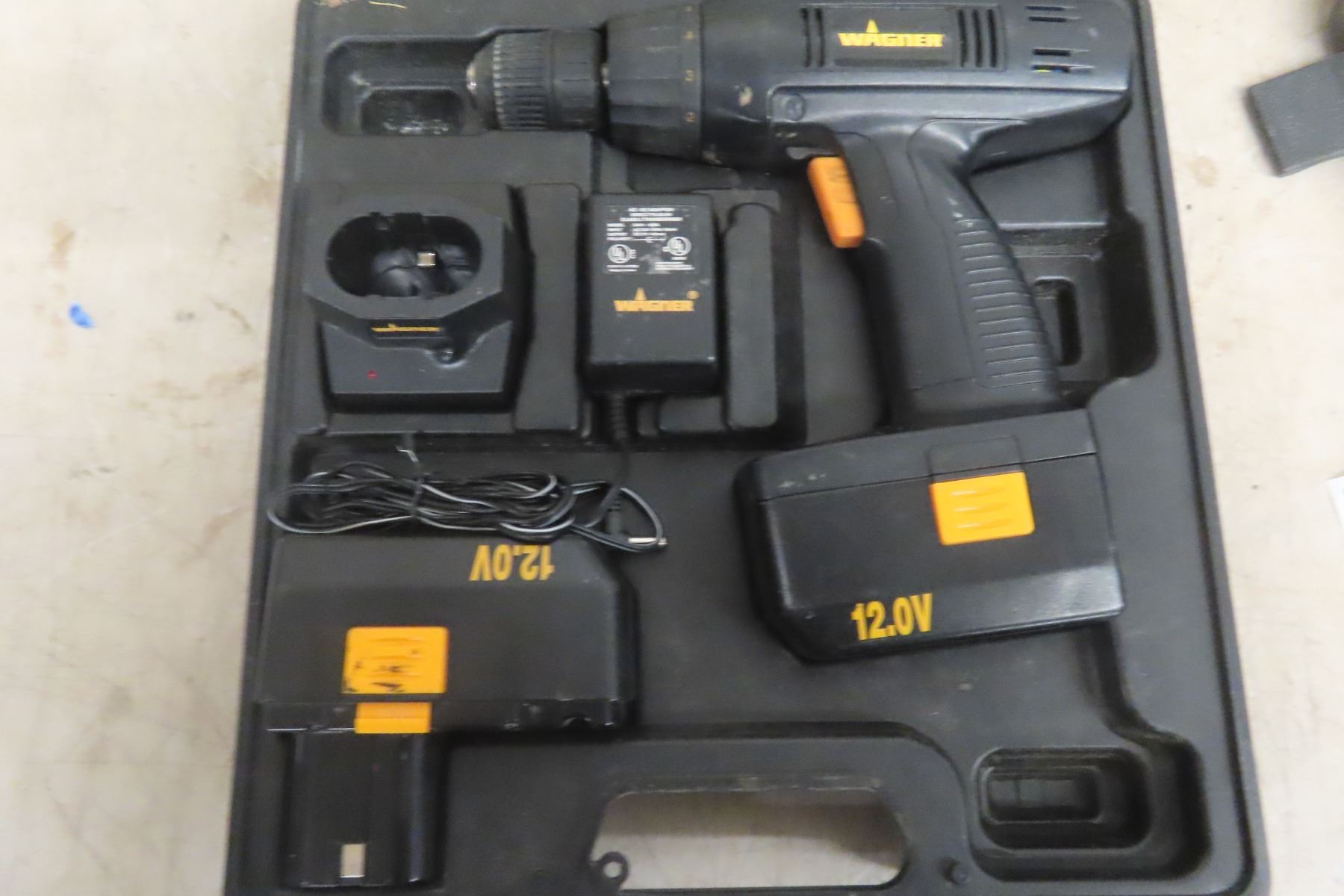 Wagner 12V Drill, 2 Batteries, Charger, Drill Bits, Hole Saw, Screw Bits & More