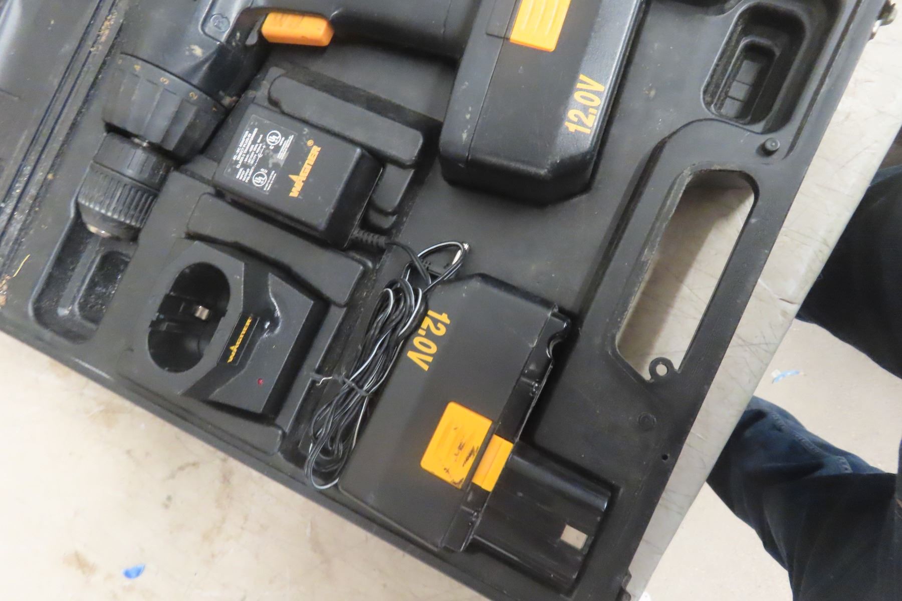 Wagner 12V Drill, 2 Batteries, Charger, Drill Bits, Hole Saw, Screw