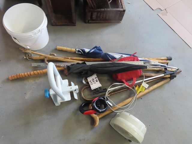 Walking Sticks, Cane, Heater, Tub Safety Rail, & Umbrella