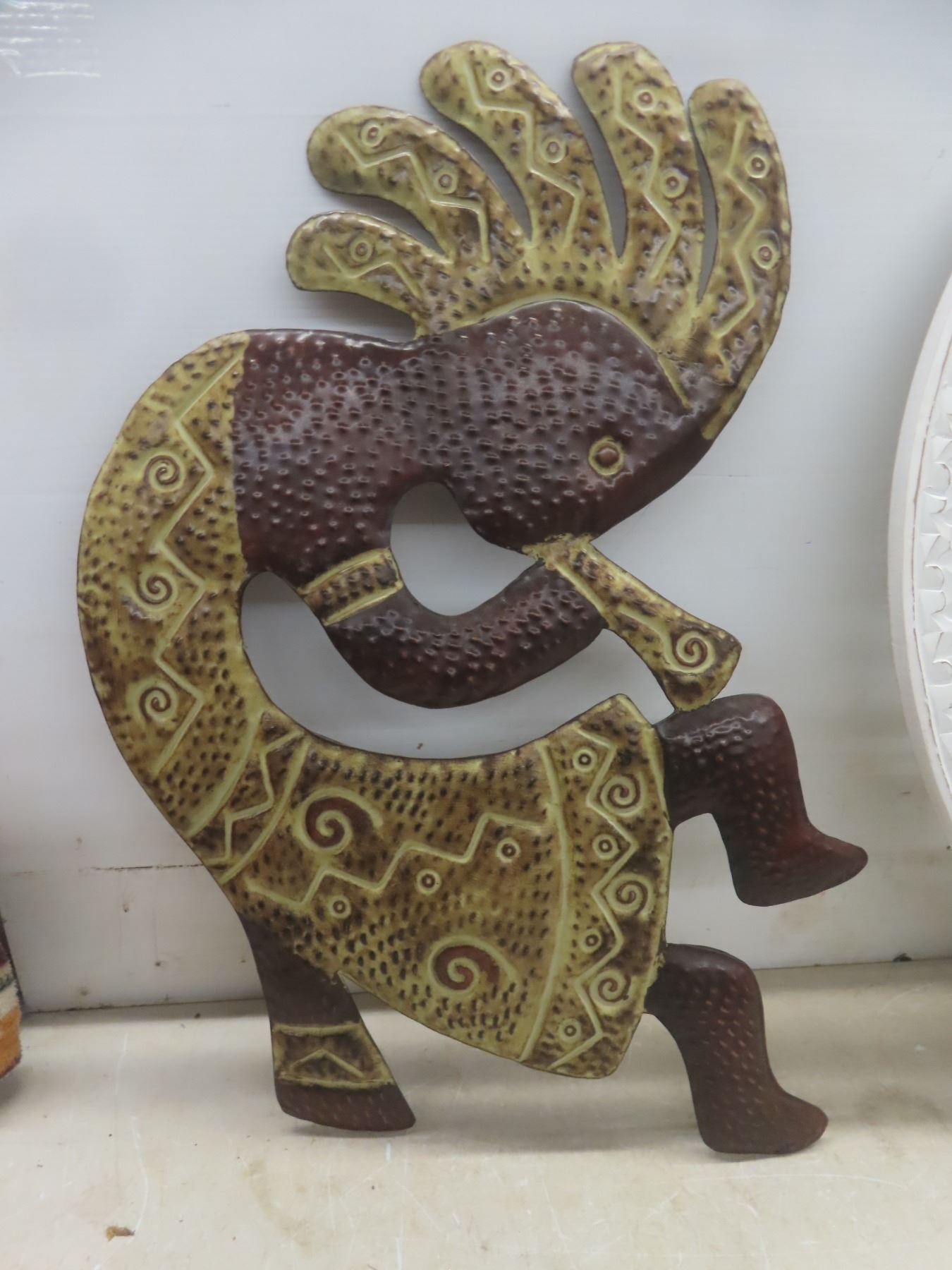Wall Art Including 30" Round Medallion and 26" Metal Kokopelli Figure