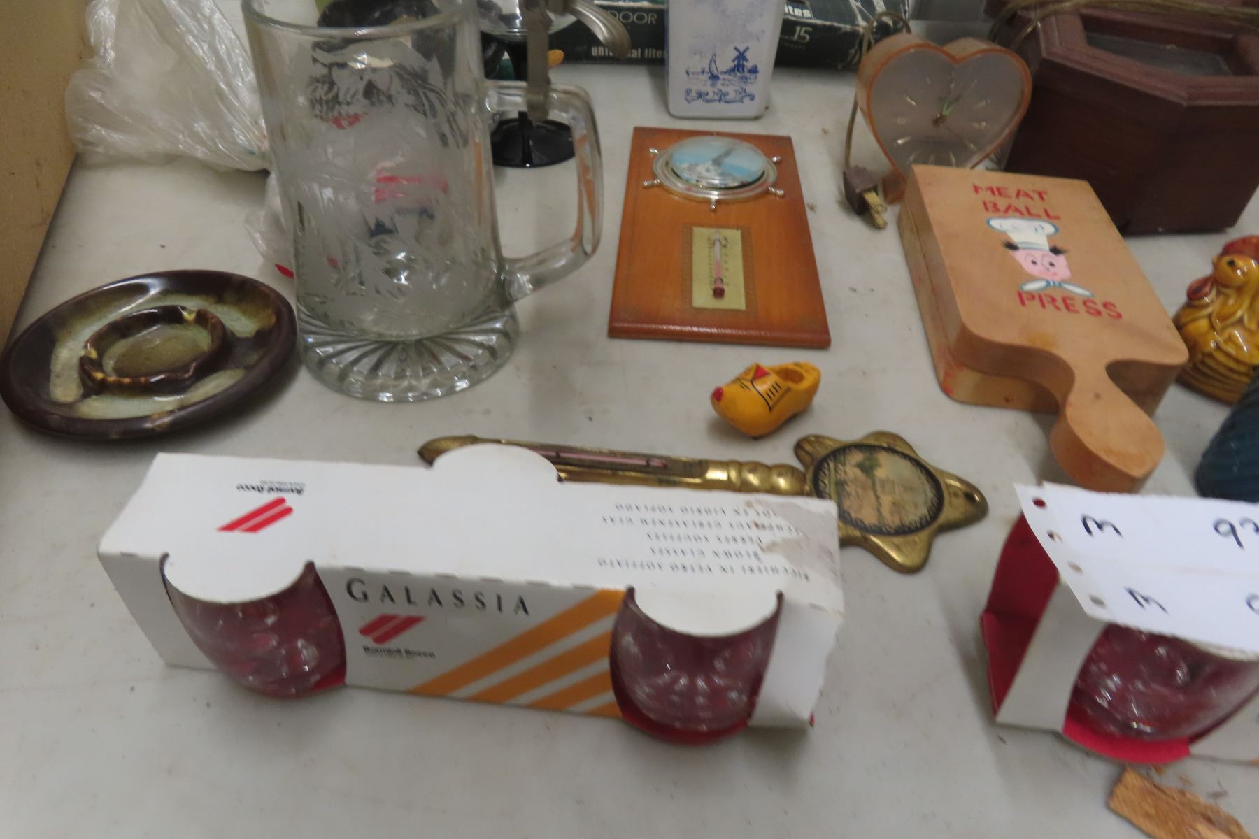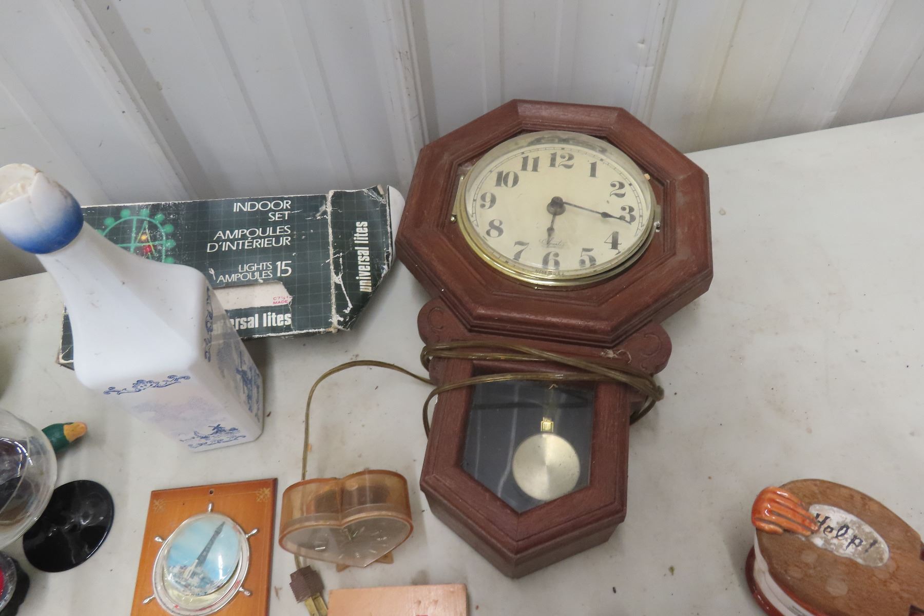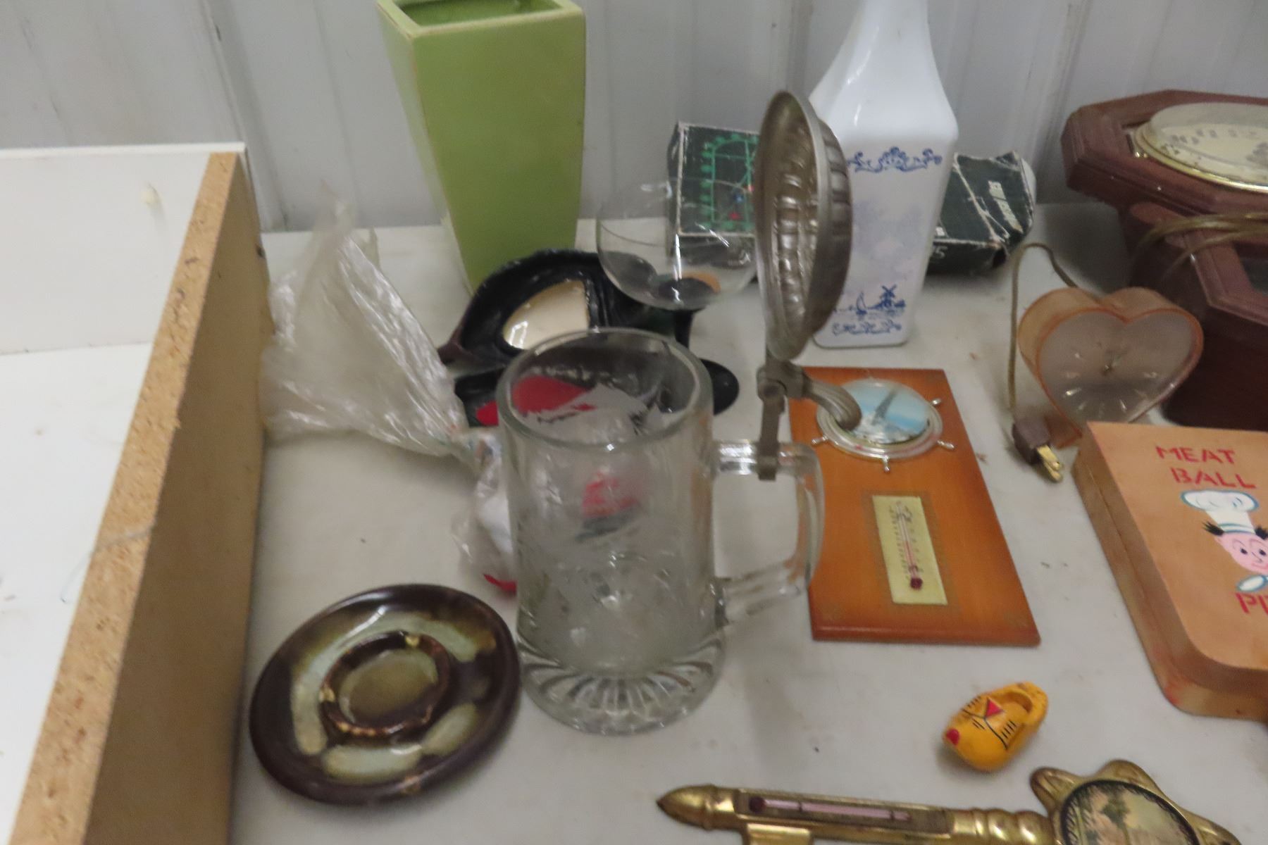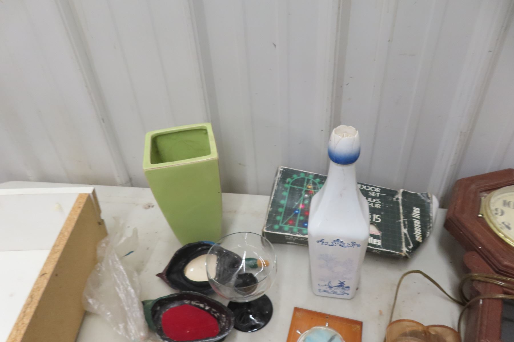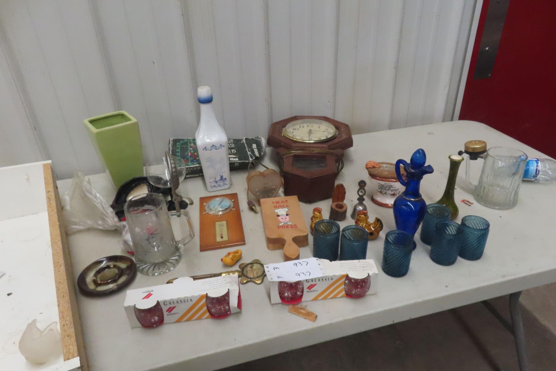 Wall Clock, Flask, Decanter, Glassware; Nut/Bolt Press Pin and More