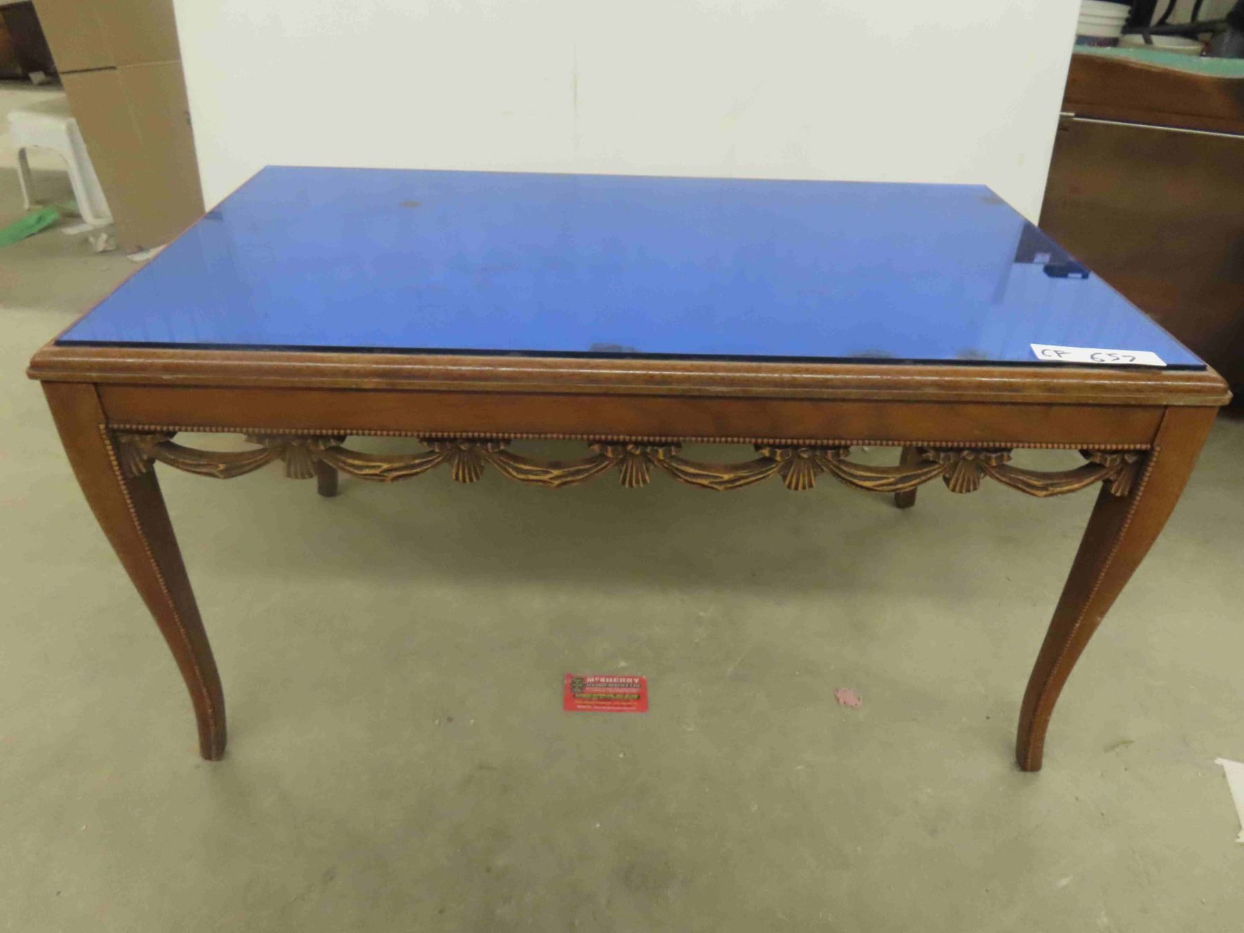 Walnut Coffee Table Detailed with Mirrored Cobalt Top 18'' x 33'' x 19''