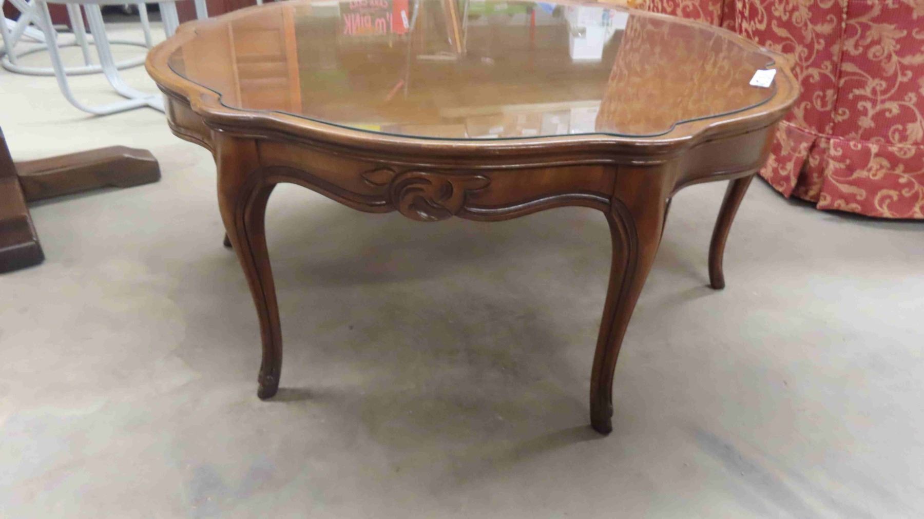 Walnut Coffee Table with Glass Top Protector 17" x 40"