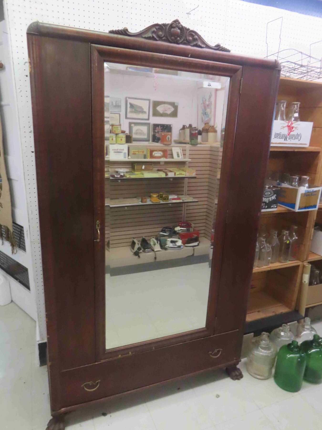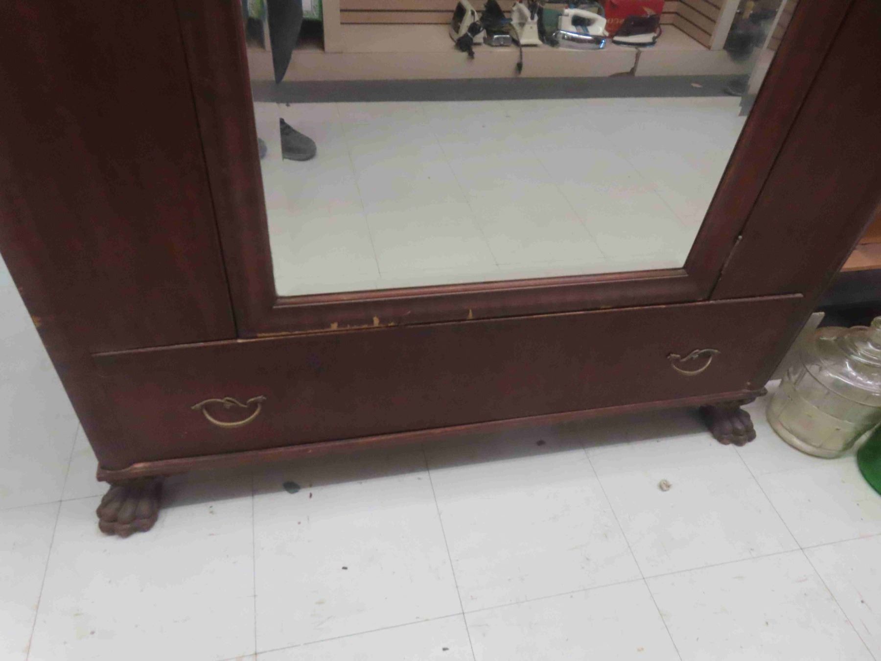 Wardrobe with Bevelled Mirror + Claw Feet & Bottom Drawer 20" x 45" x 73"