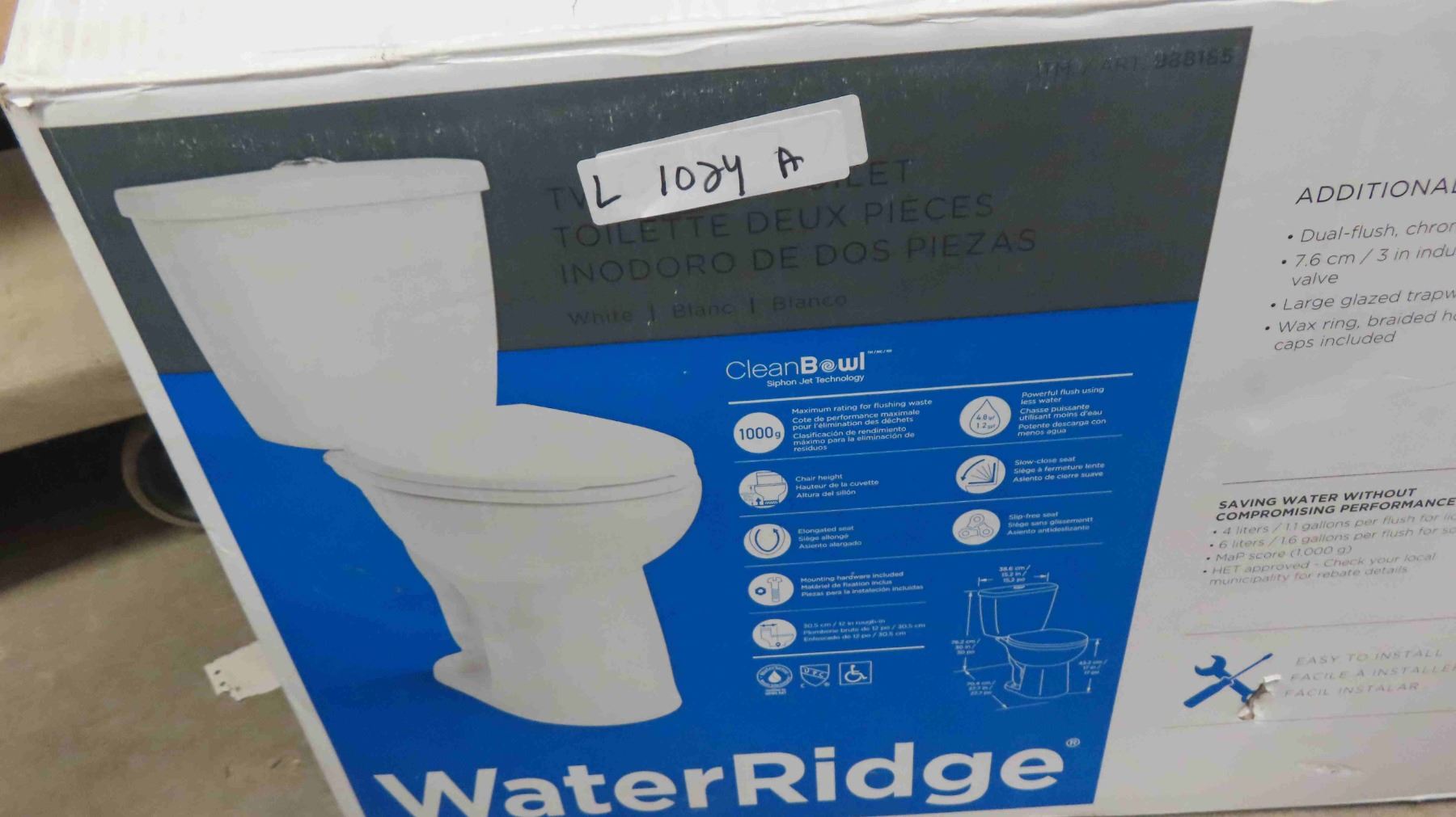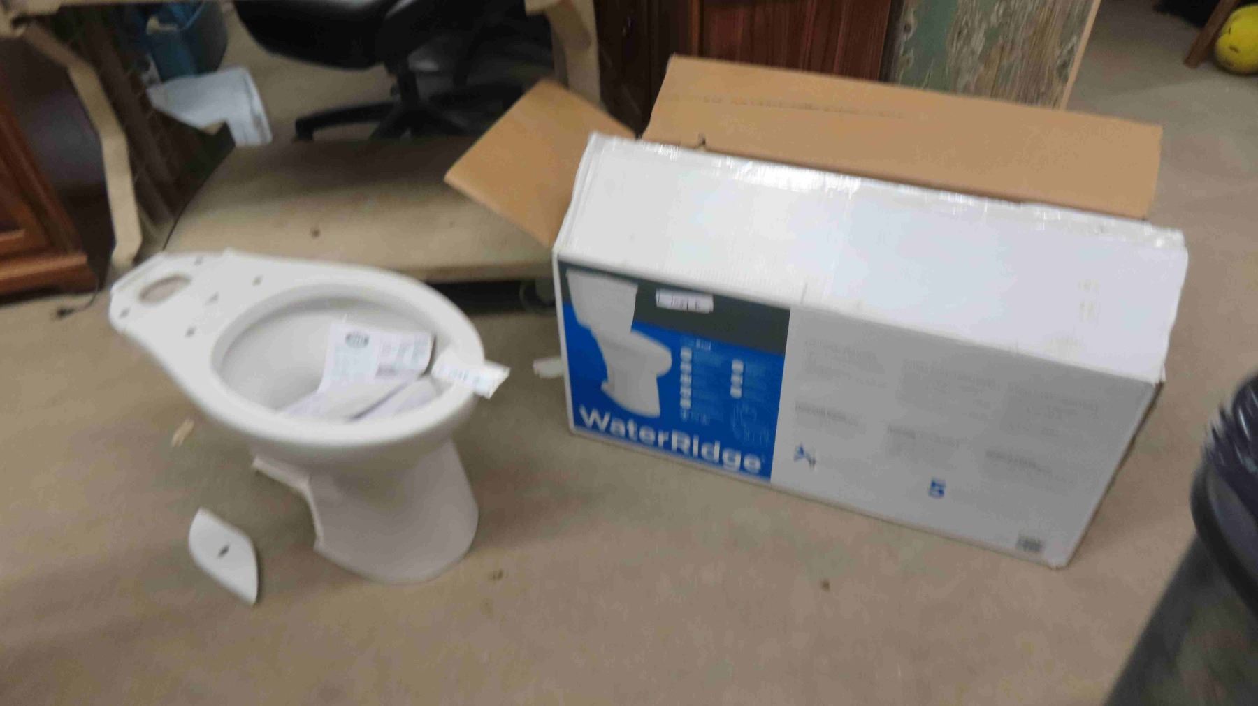 Water Ridge New Toilet With Transport Damage, Bottom Fastener Edge Broke - see in picture