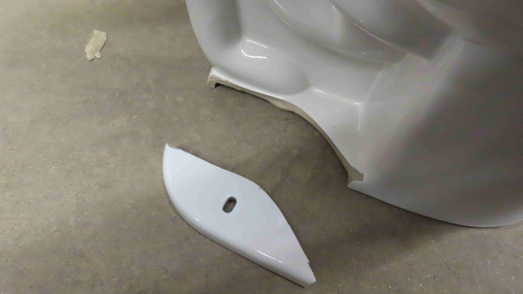 Water Ridge New Toilet With Transport Damage, Bottom Fastener Edge Broke -