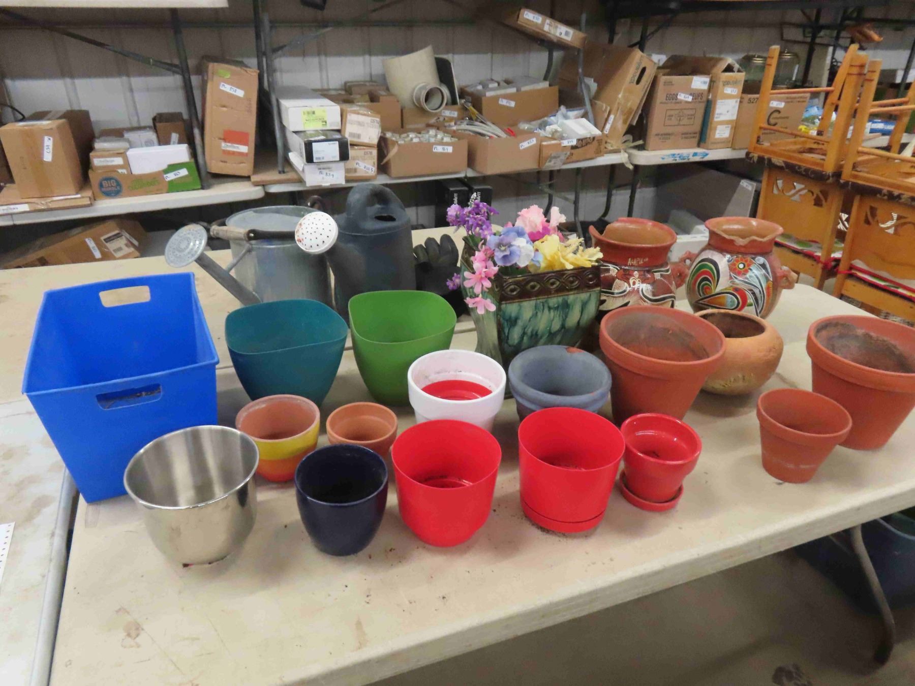 Watering Cans + Variety of Pots; Plastic, Clay, Decorative