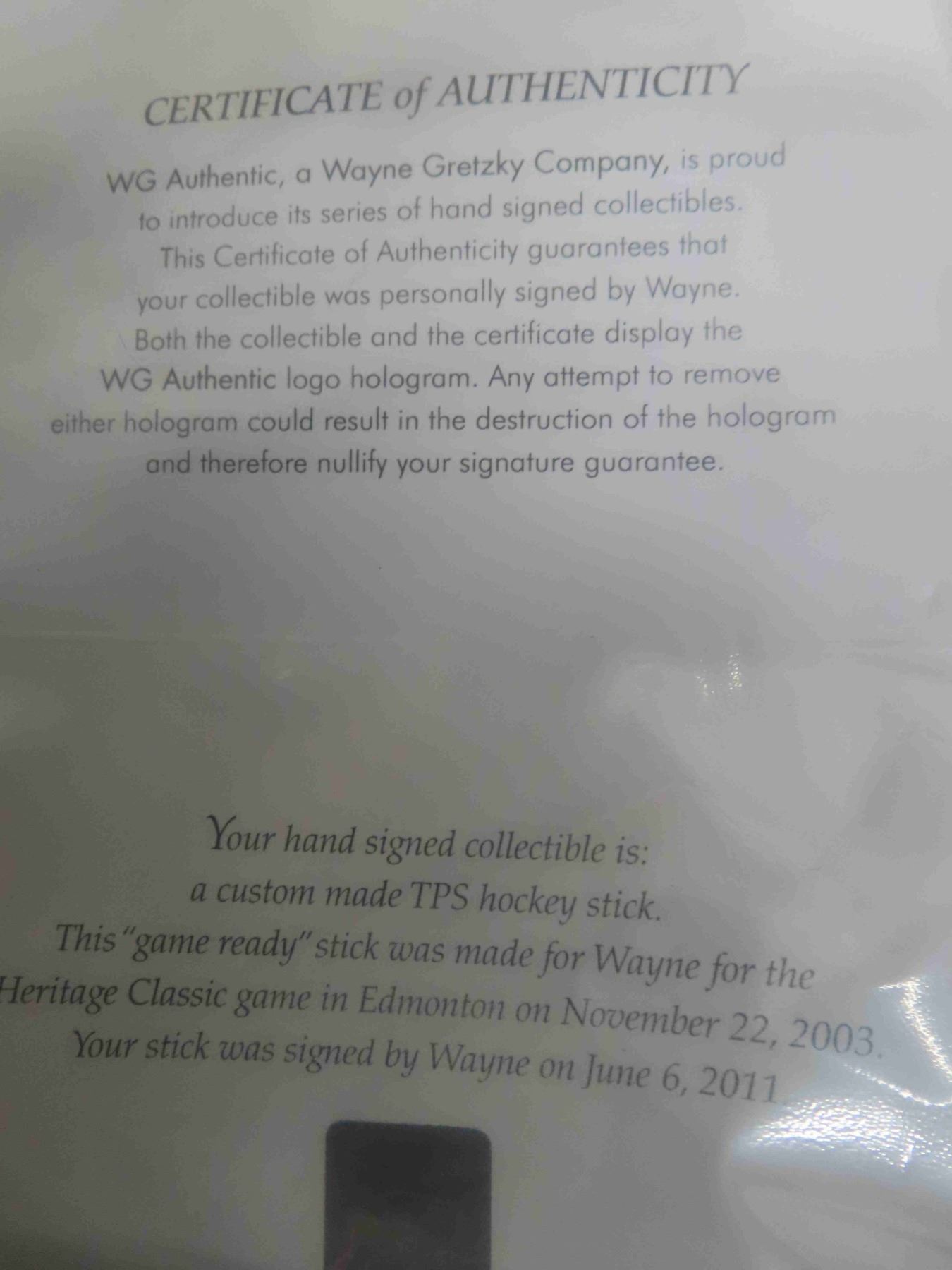 Wayne Gretzky Autographed Hockey Stick with COA Marked 'GAME READY STICK' - Nov 22/03 For Heritage Classic in Edmonton