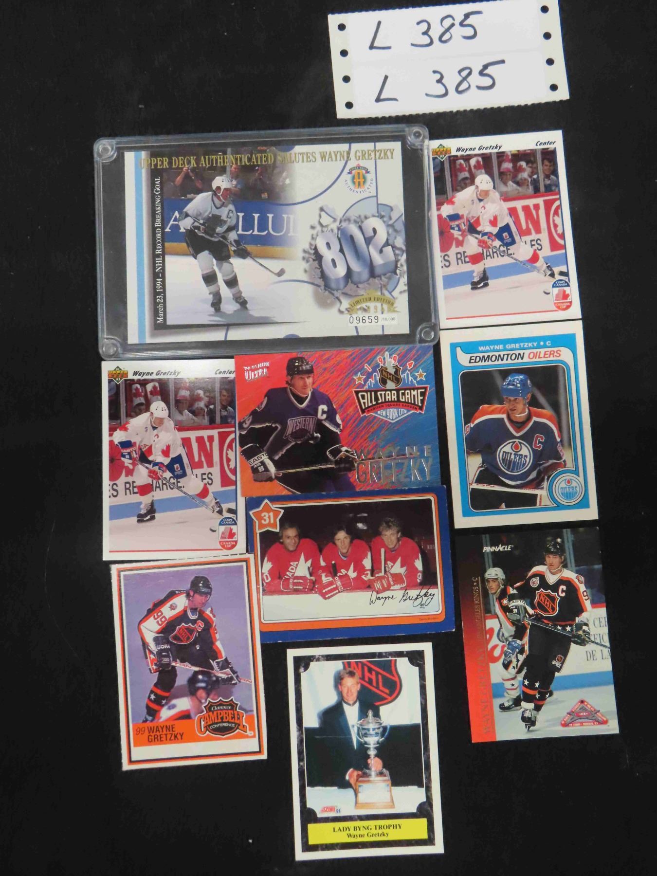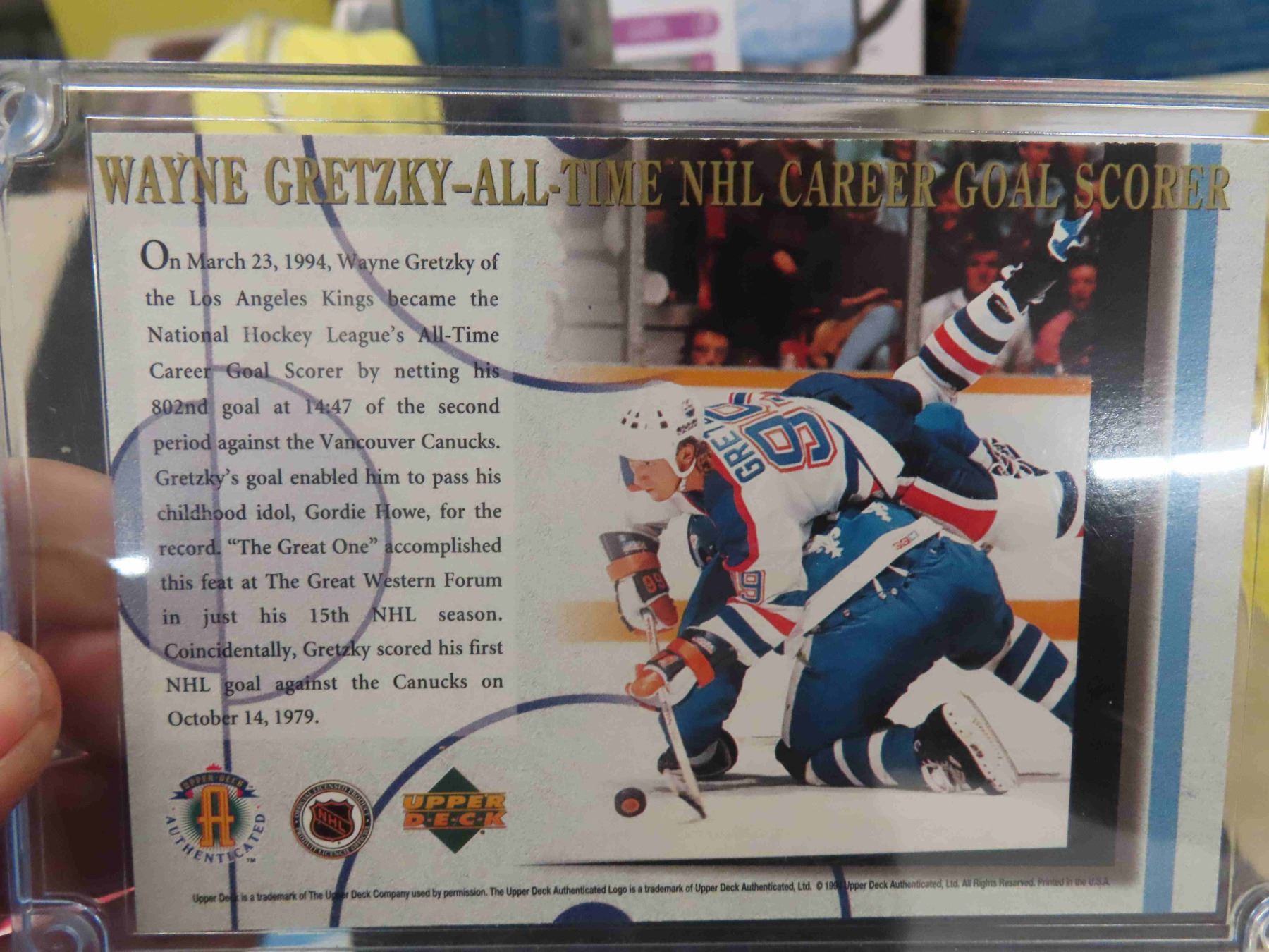 Wayne Gretzky Record Breaking Goal 1994 Card 5'' x 3 1/2'' , 7 Other Cards 1 Autographed