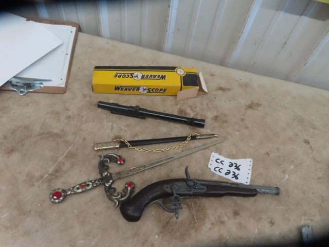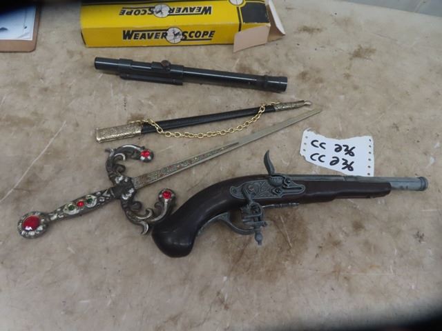 Weaver 22 Scope, Replica Display Flintlock & Decorative Ceremonial Sword