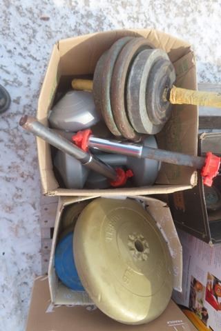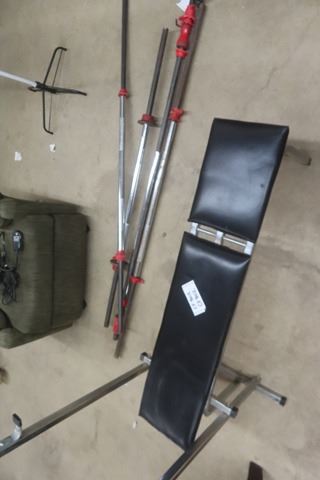 Weight Bench with Assorted Bars and Weights