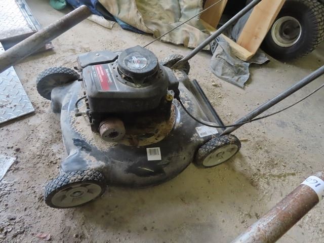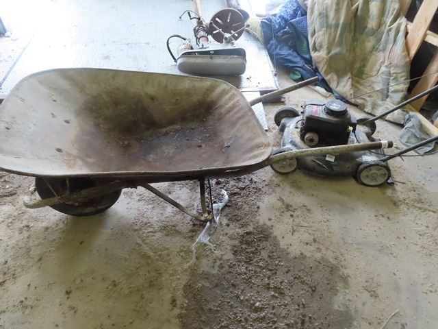Wheel Barrow & Yard Machine 148 cc Push Gas Lawn Mower- ??? RUNNING - UNKNOWN???