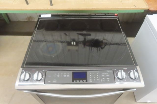 Whirlpool Glass Top Front Dial Stove with Convection Oven 30", Stainless Steel Model # YWEE730HD0D51
