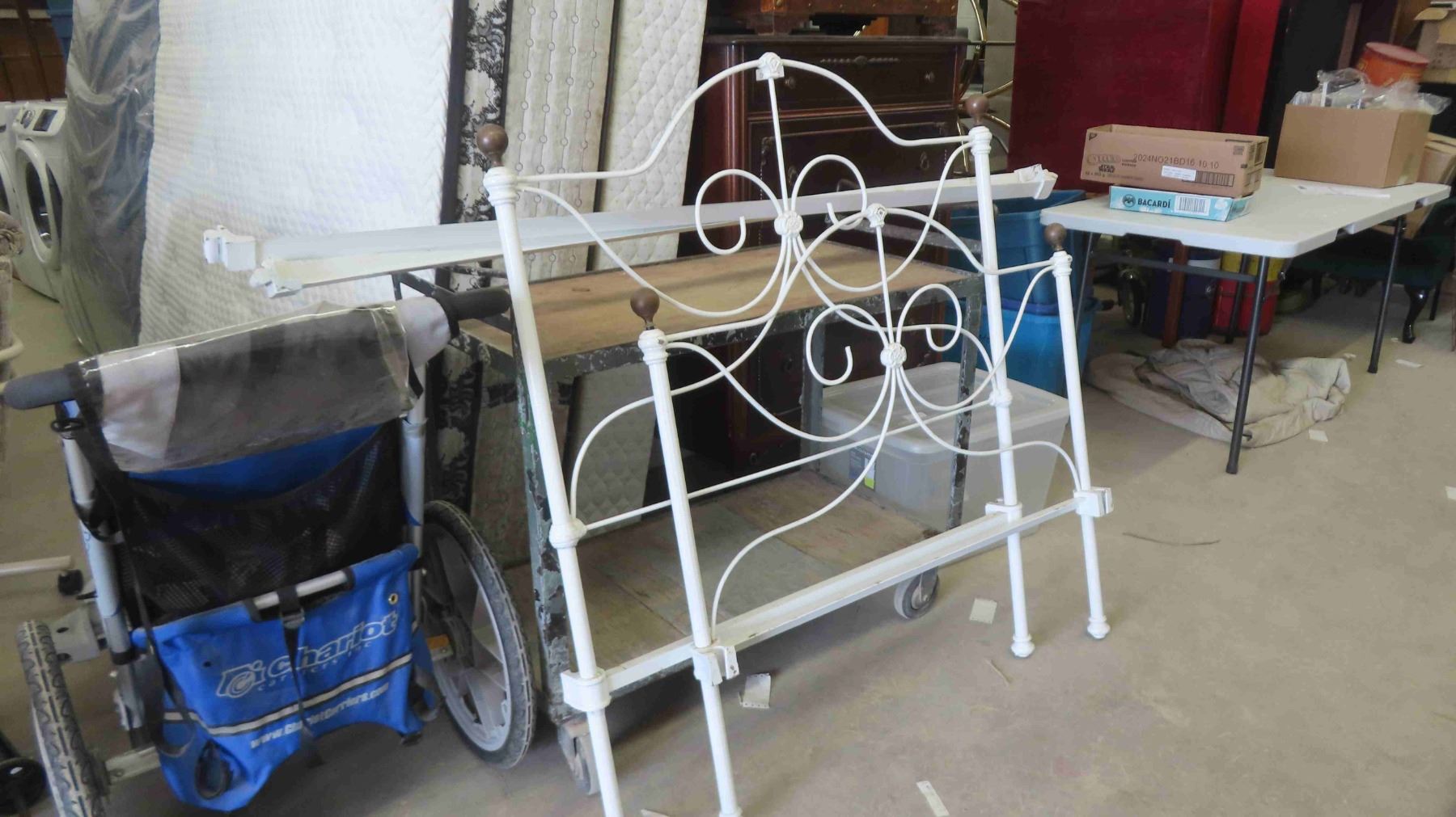White Iron Headboard and Footboard with Brass Bed Posts and Rails for Single Bed 42'' Wide