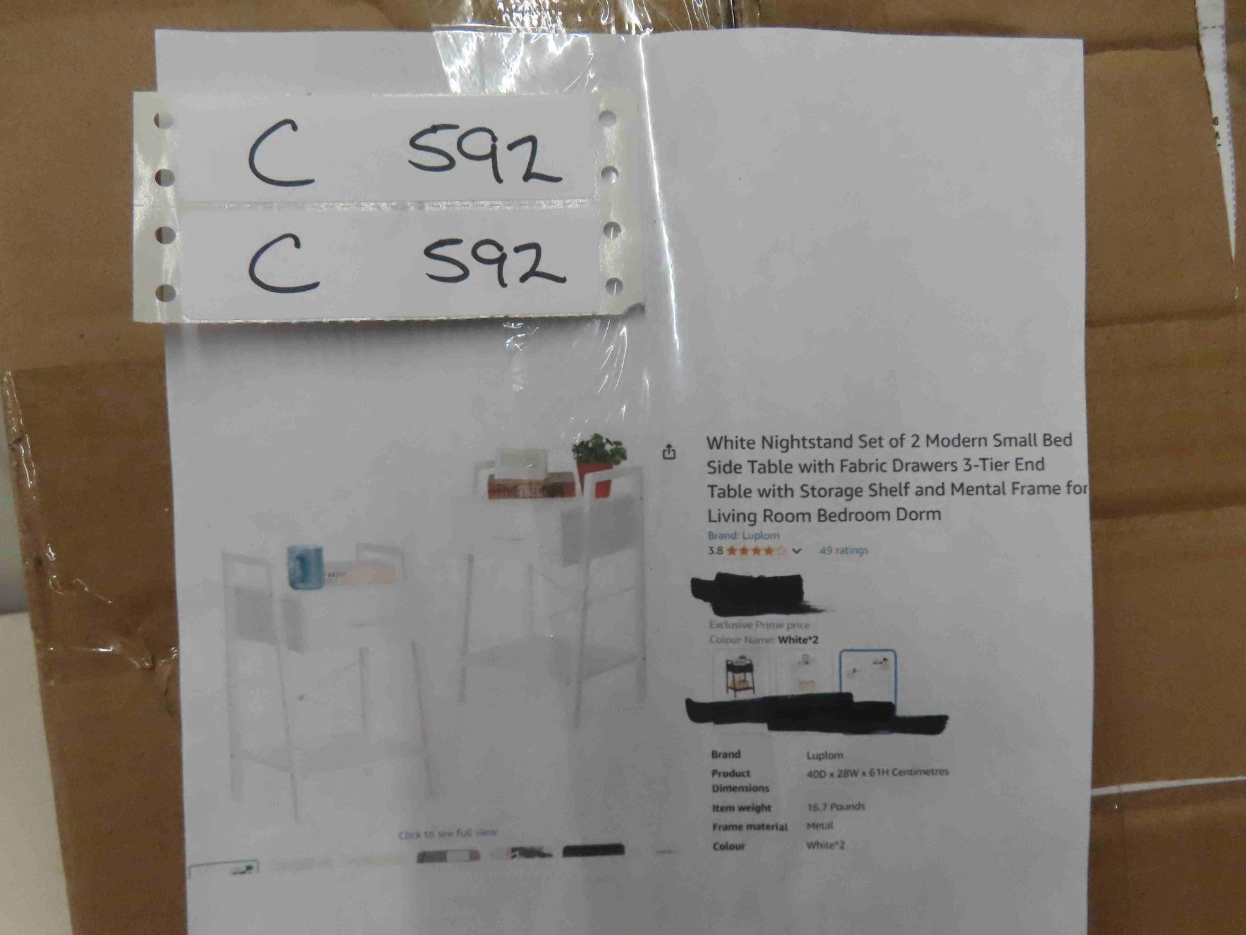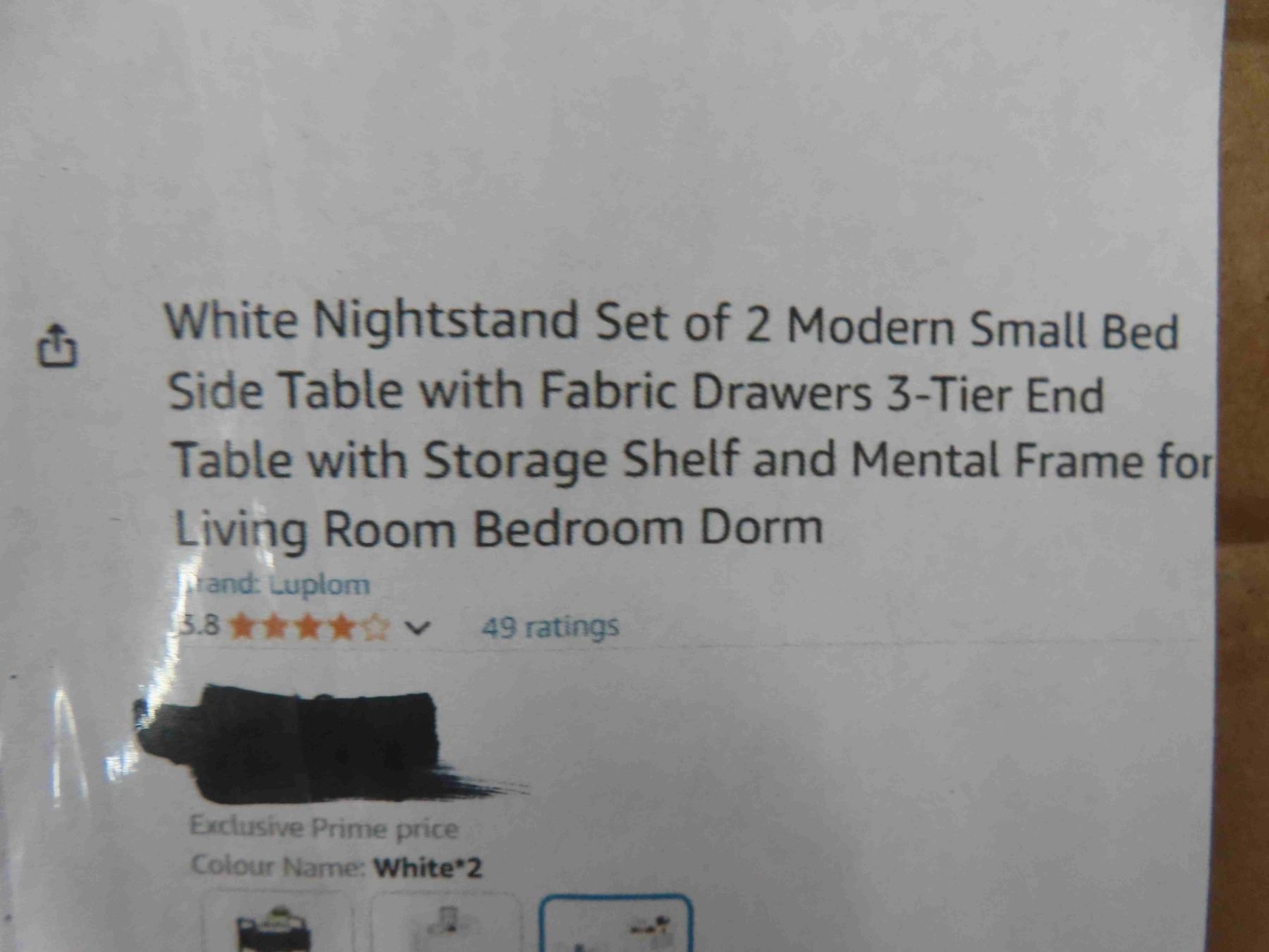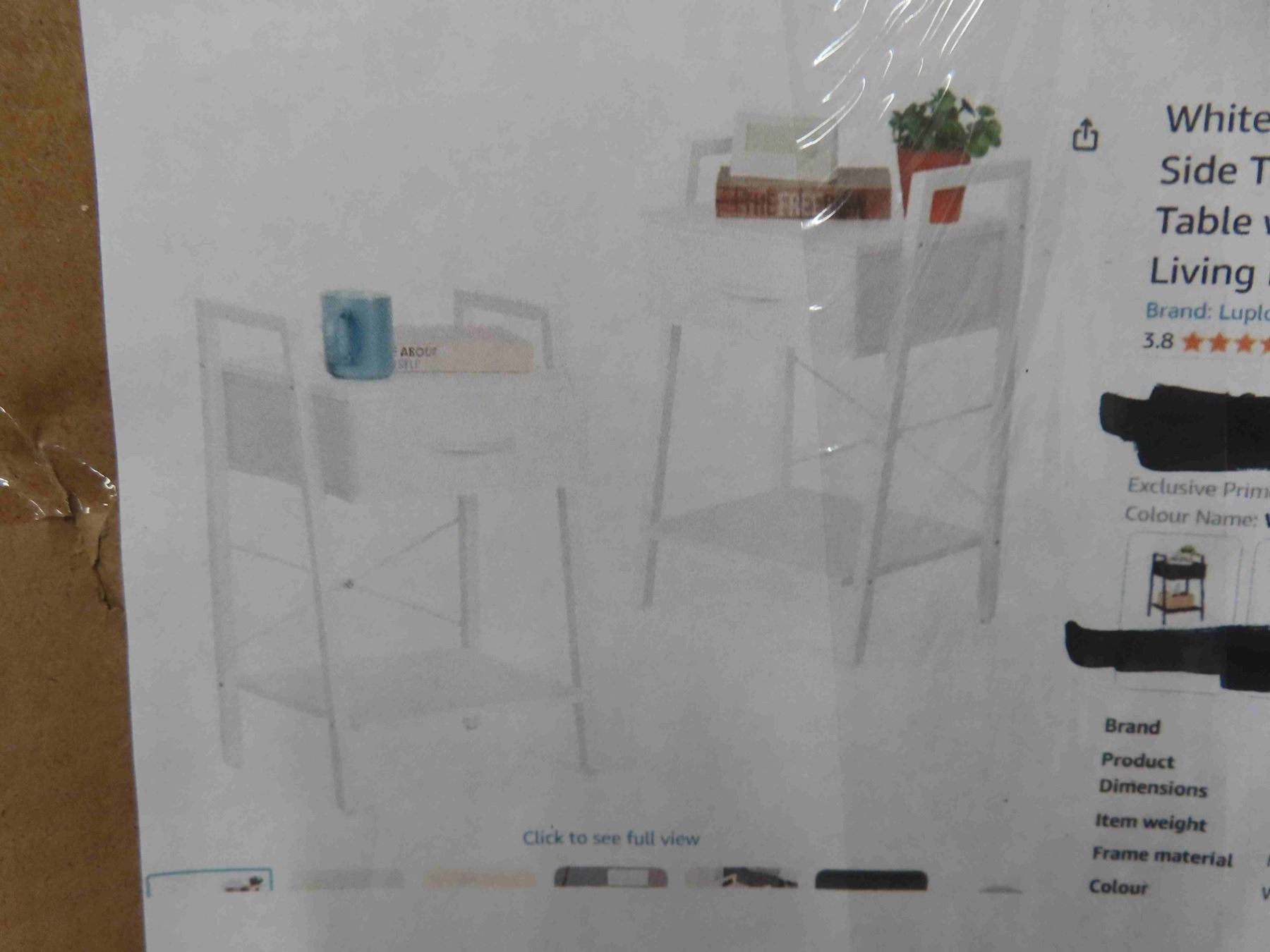 White Nightstand Set of 2 Modern Small Bed Side Table with Fabric Drawers 3-Tier End Table with Storage Shelf and Mental Frame for Living Room Bedroom Dorm - New or Store Return