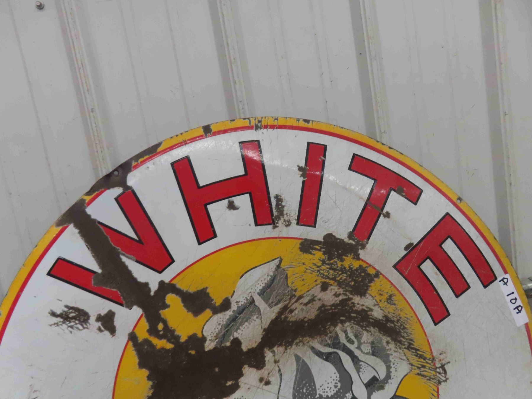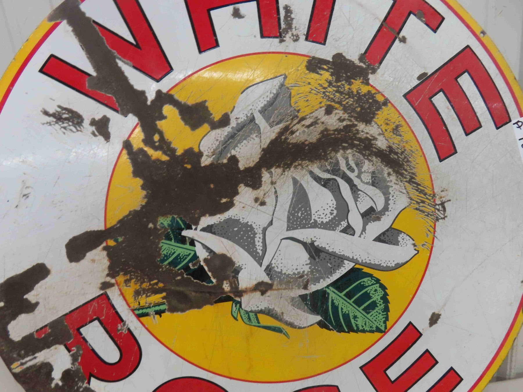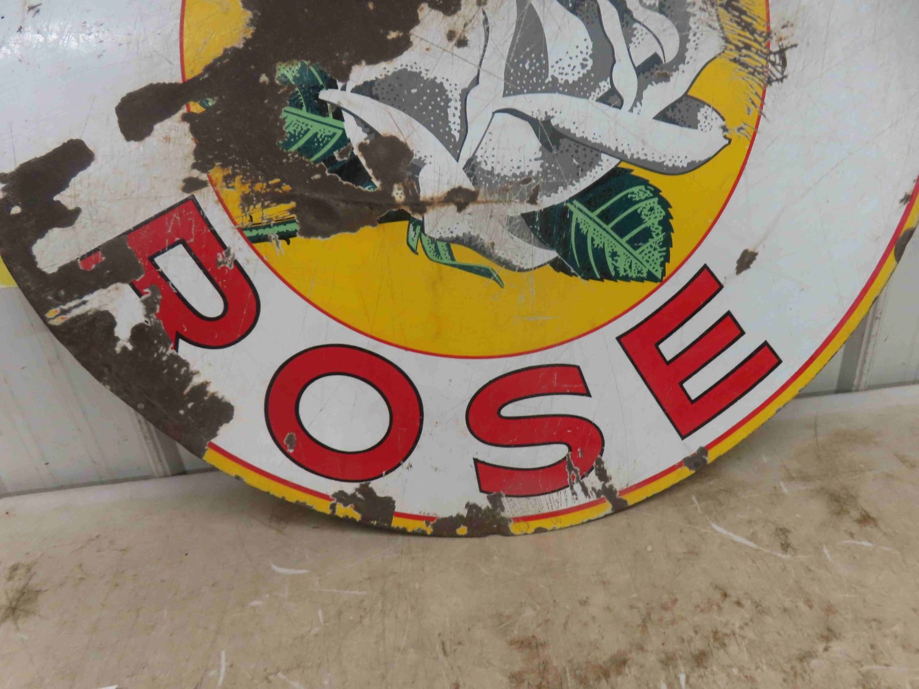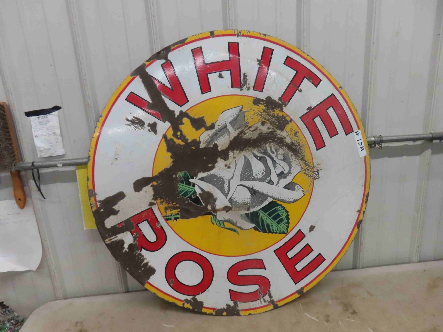 White Rose Porcelain Sign - Vintage 36" Diameter