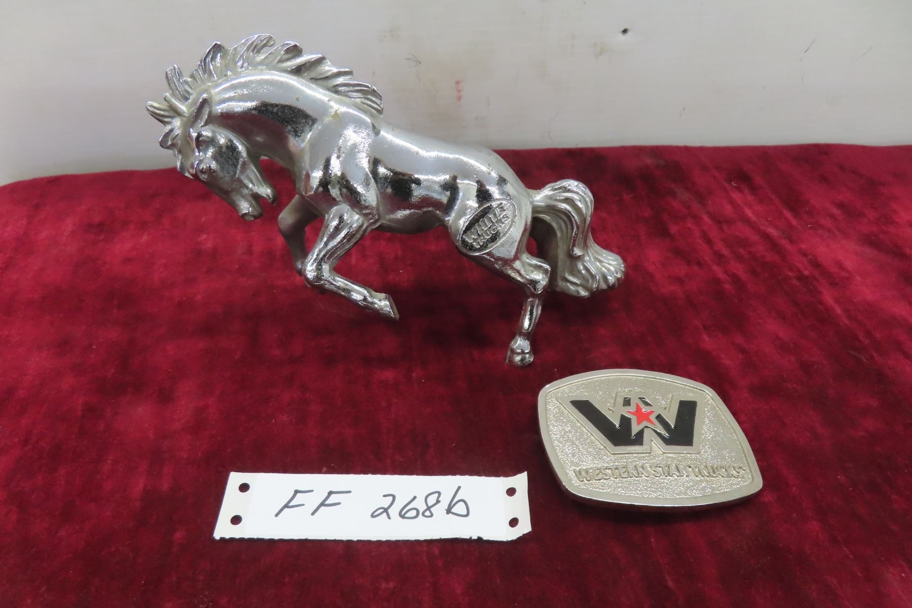 White Truck Hood Ornament + Western Star Trucks Belt Buckle