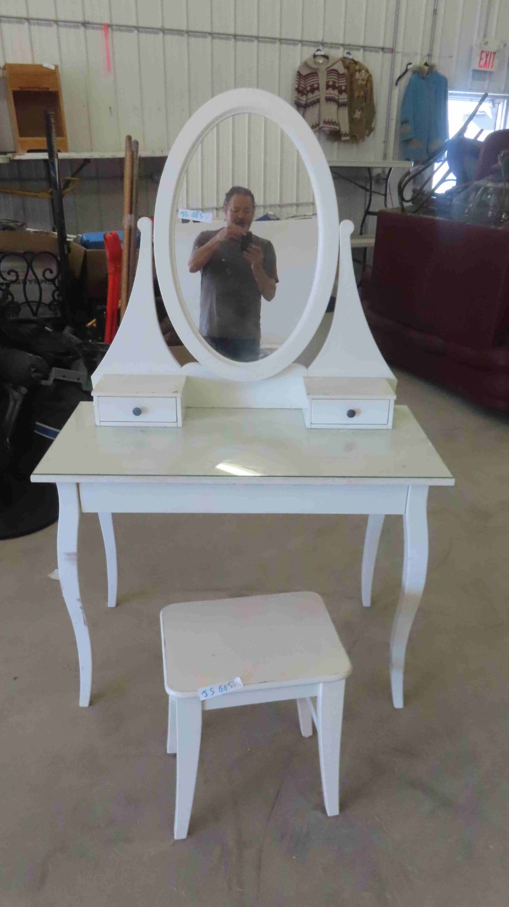 White Vanity with Swing Mirror 62'' x 39'' x 20'' & Stool