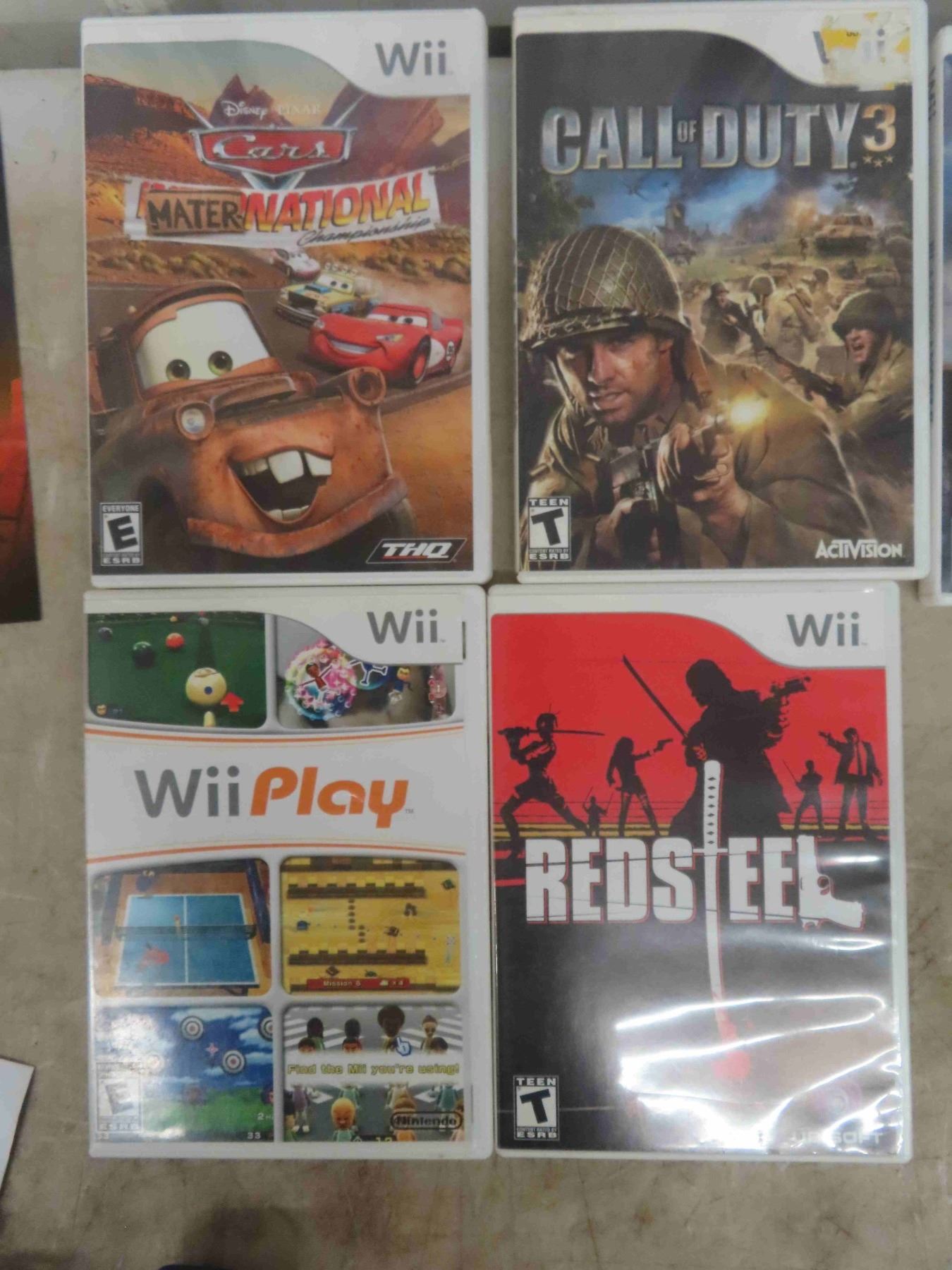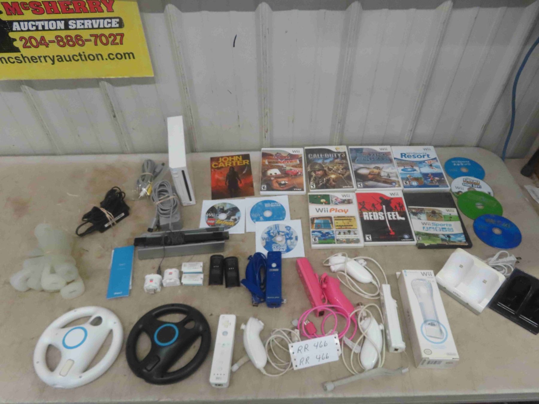 Wii System Including 14 Games, Console, Power Cords, Chargers, Steering Wheel,