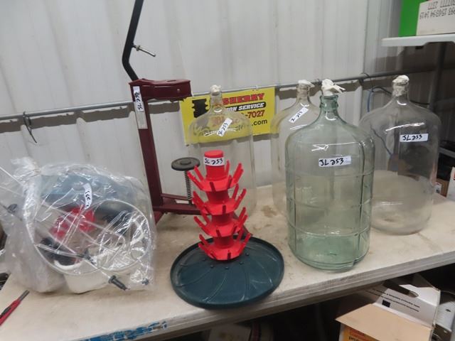 Wine Making Equipment; 4 Carboys, Corker, Pump, Brushes, Tubs, Drying Rack plus more