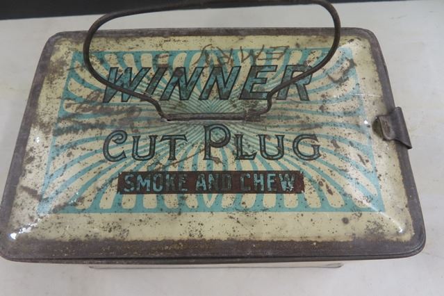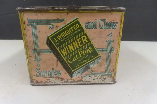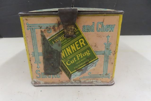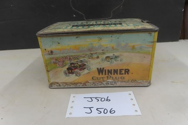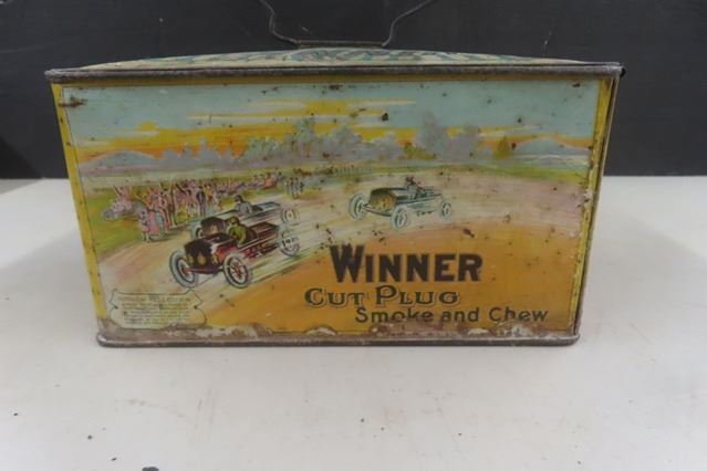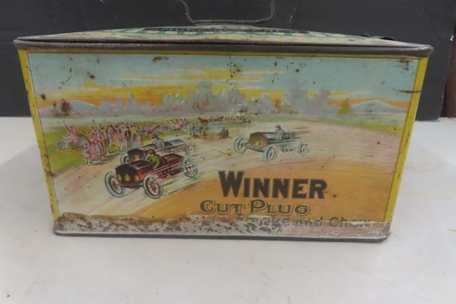 Winners Cut Plug Smoke + Chew Tobacco Tin Amazing Car Race Graphics4" x 5" x 7.5"