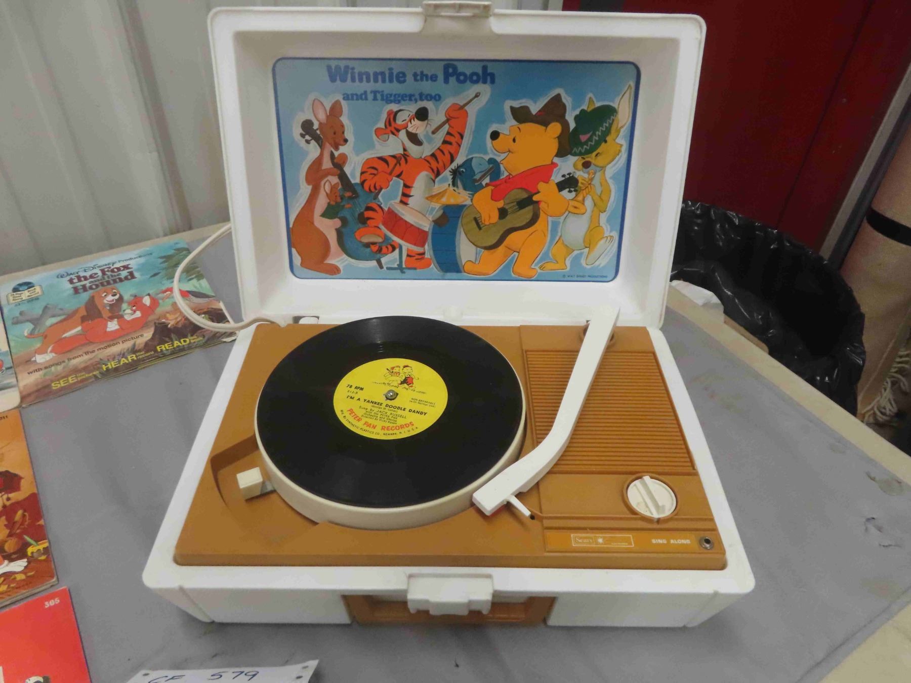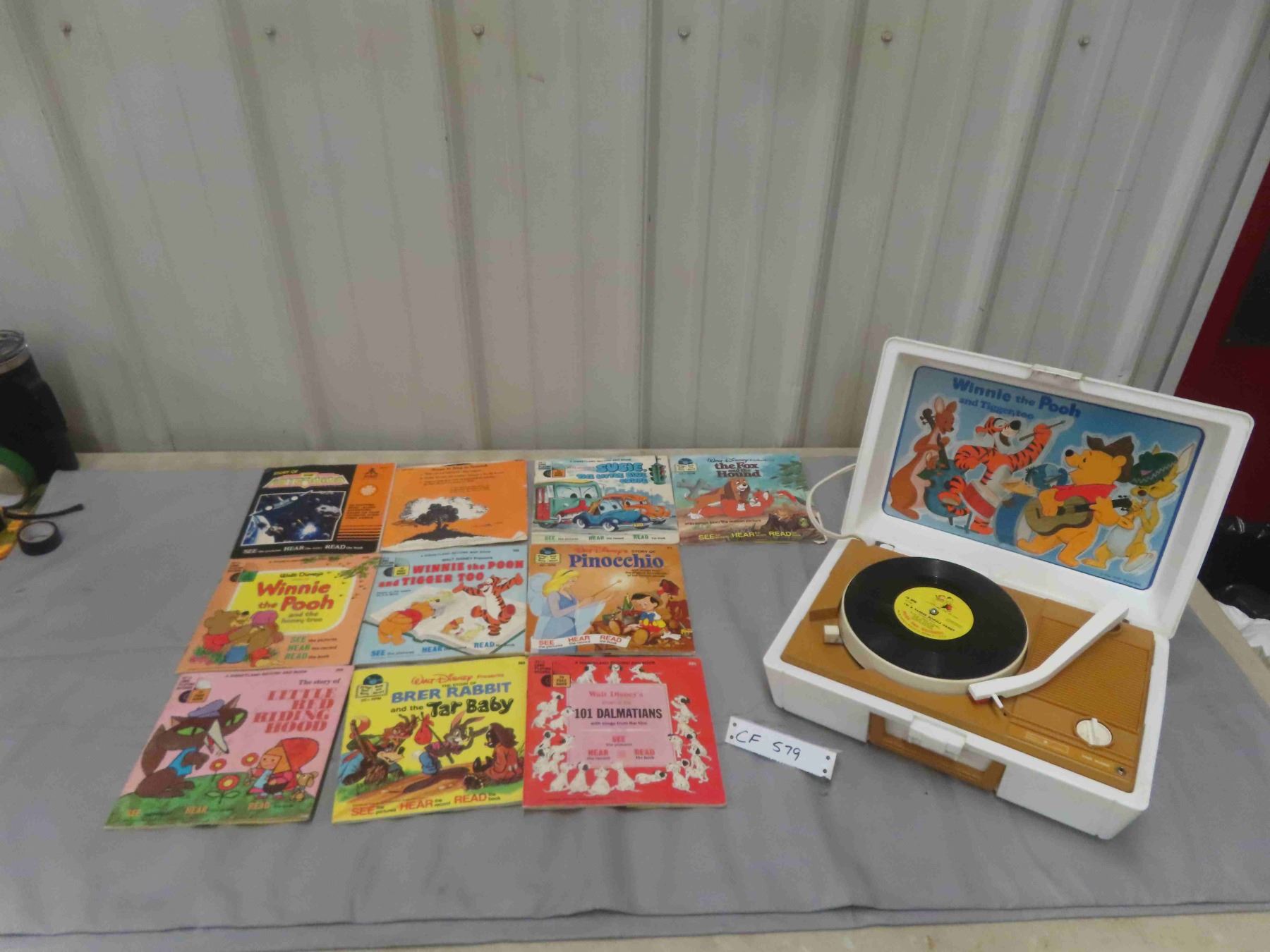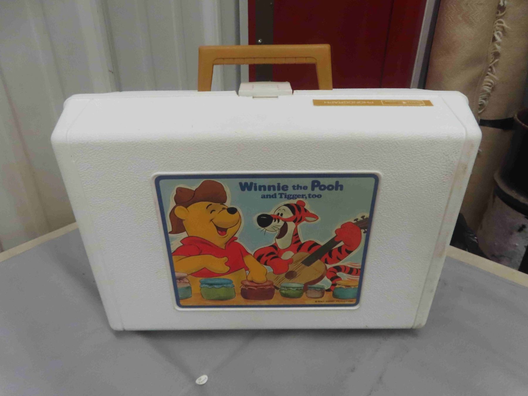 Winnie The Pooh + Tigger Too Kids Portable Record Player + 10 45 RPM Records - works