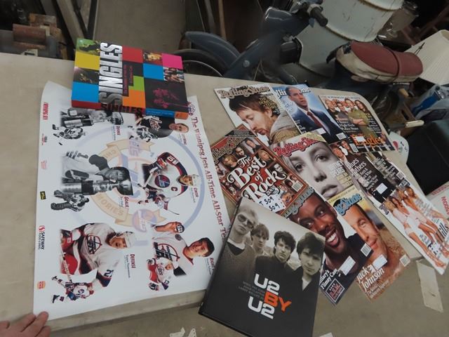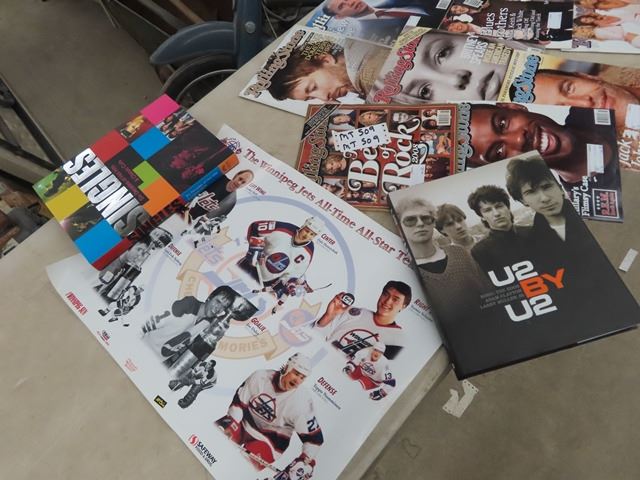 Winnipeg All Star Team Posters, U2 Book, Rollingstone Magazines, 2 Tier Serving Stand