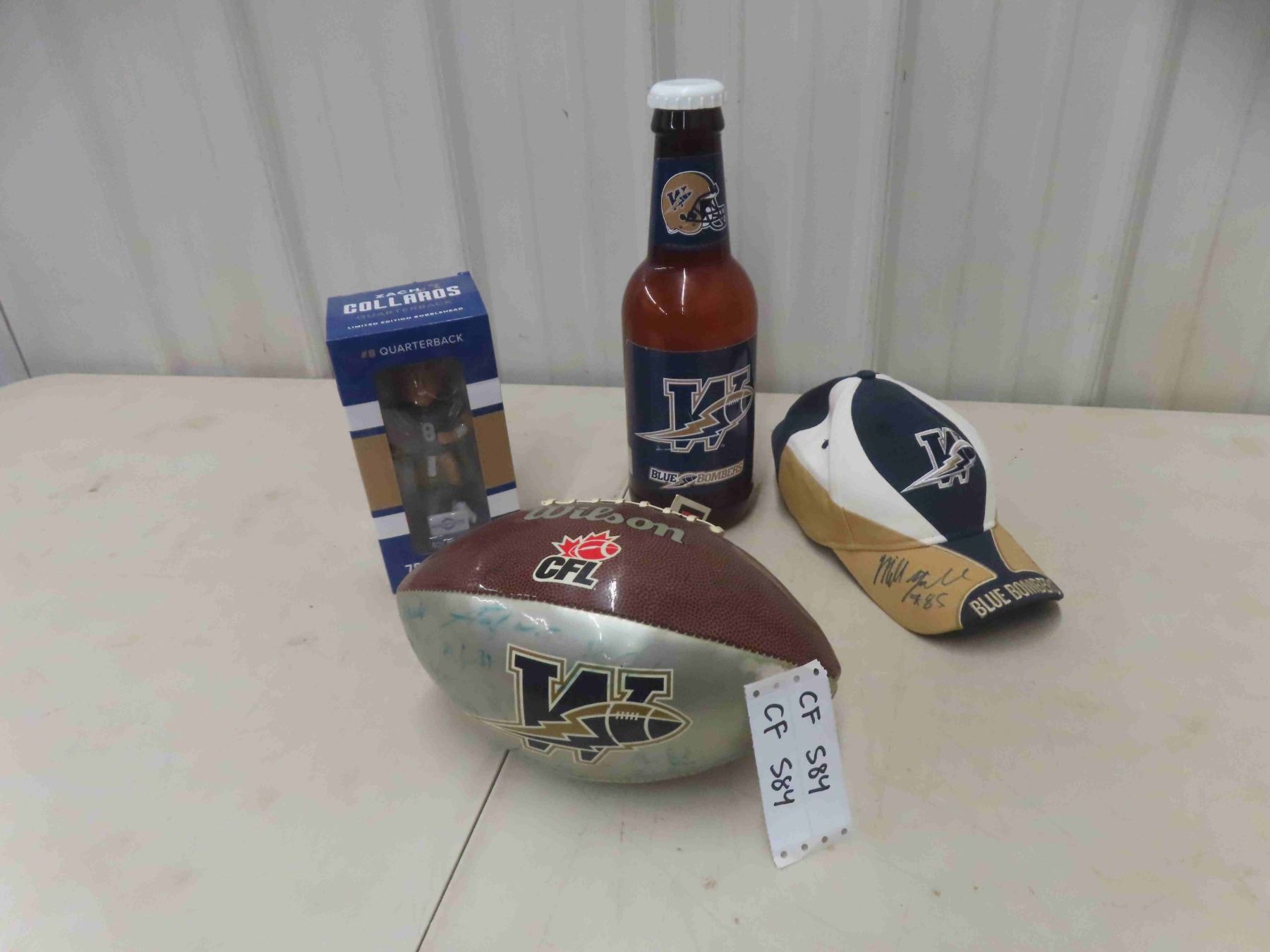 Winnipeg Blue Bombers Cap, Football with Autographs, Bobble Head, Bank