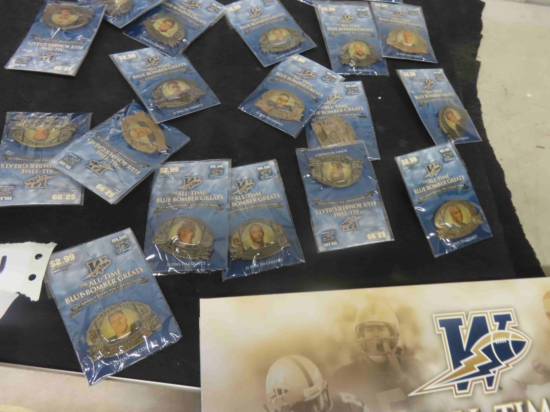 Winnipeg Blue Bombers Items: Pin Collection, Autographed Ken Ploen Record Blue&Gold Years, Plus